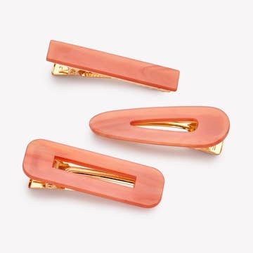 Grampos de cabelo salmão rosa flor + pontos bordados à mão