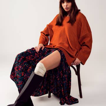 Vestido midi plus size estampado com decote em V