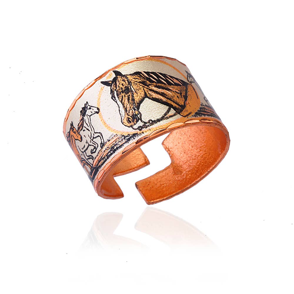 Anéis ajustáveis de design amplo. Anéis nativos azul cerceta Rn-29BL Os anéis feitos à mão são feitos à mão individualmente, banhados a prata e lapidação de diamante em cobre neste design de joias nativas americanas do sudoeste com cor de fundo azul denim. Anéis feitos à mão oferecidos por artesãos da Copper Reflections em coleções notáveis de estilos e designs únicos e originais.