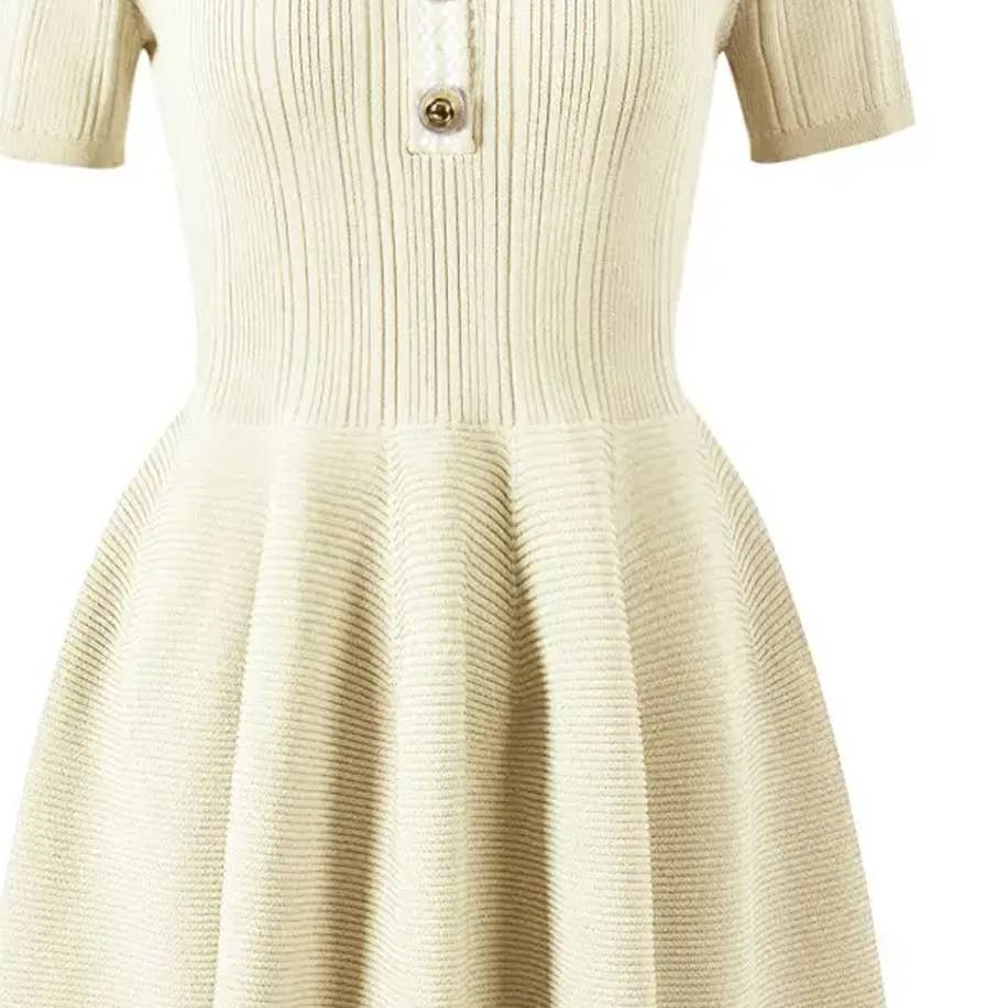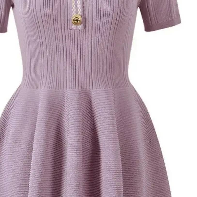 SY065 Vestido de Malha Slit Slit Scotry Bow-Accent - Primavera/Verão