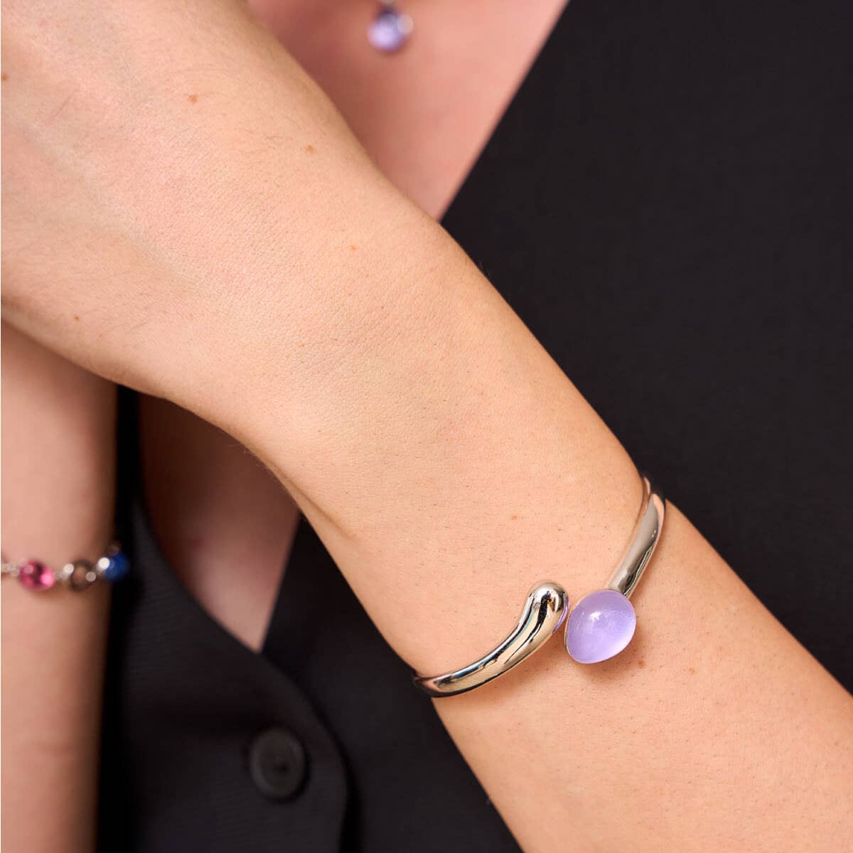 DETALHES * Material Prata de Lei 925 * Acabamento Polido com banho de Ródio * Fecho - * Medidas Cristal 1,2 x 1,4cm. Ø 6m. Largura de 0,4 a 0,7cm. DESCRIÇÃO Pulseira rígida e aberta de prata com lágrima de cristal fúcsia intenso numa extremidade e forma mais larga e arredondada na outra. Disponível em 5 cores diferentes. Lágrimas de cristal sobre prata polidas em cores penetrantes, refletem a luz de forma intensa e profunda. Ava é brilho e cor, em peças que realçam a beleza de quem as usa. Diferentes tamanhos, cores e modelos para escolher, combinando-os, misturando-os ou usando-os sozinhos. Ava ilumina-te ao mesmo tempo que reflete o que há dentro de ti.