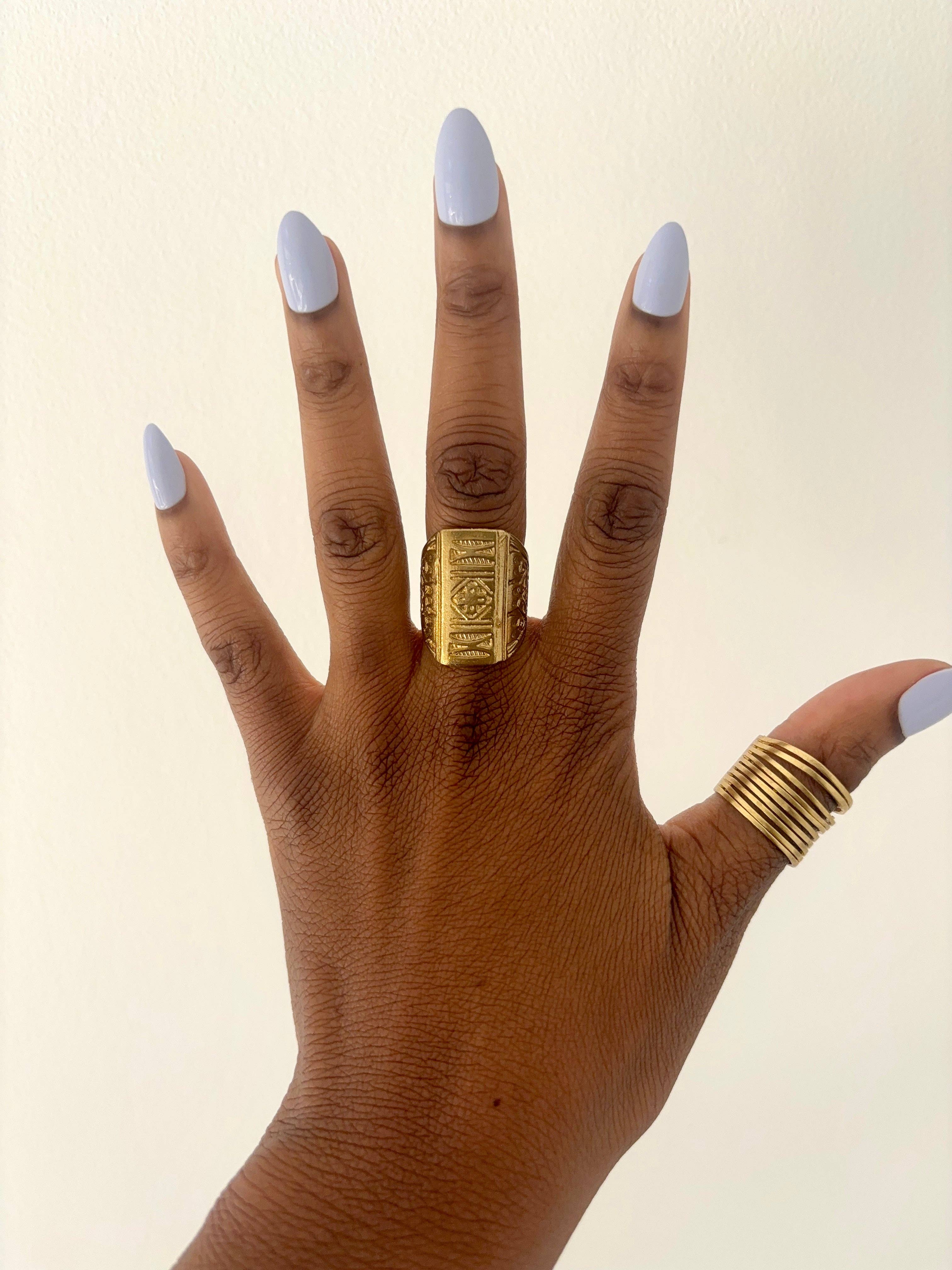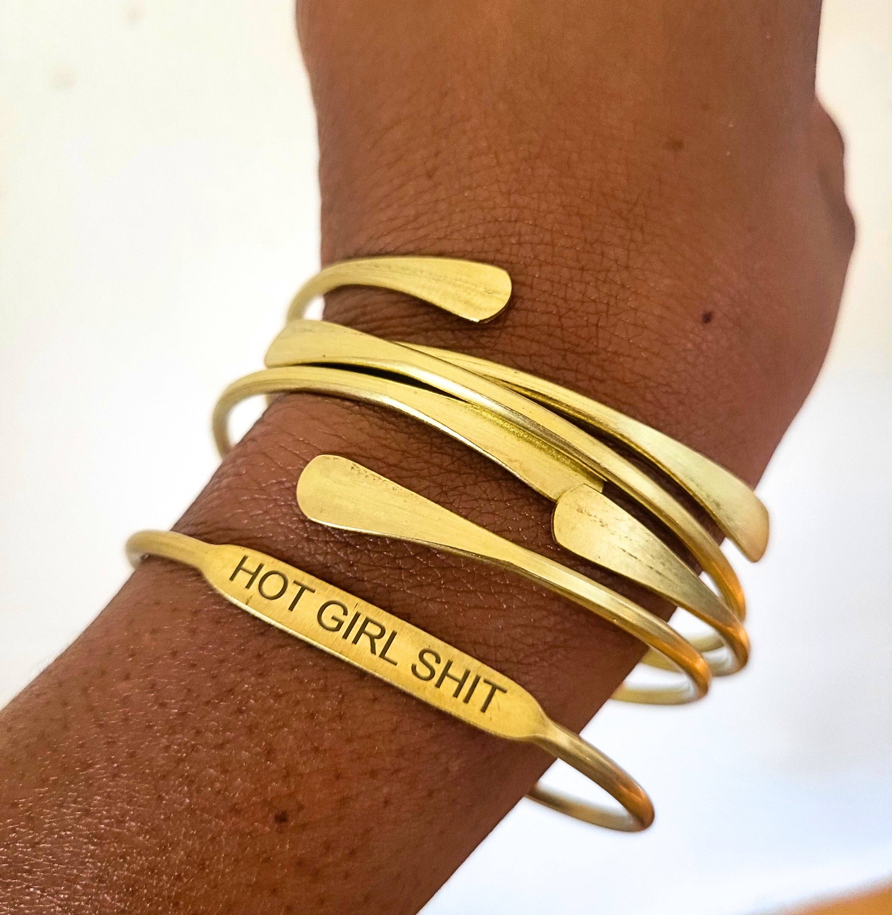 Pulseira de Búzios 100% em Latão com acabamentos martelados para complementar. Criada utilizando uma técnica de joalharia da África Ocidental. Esta peça é concebida para durar uma vida inteira com cuidados simples. Ajustável para se adaptar a qualquer tamanho de pulso. Alta qualidade, hipoalergénica e criada com materiais de latão bruto.