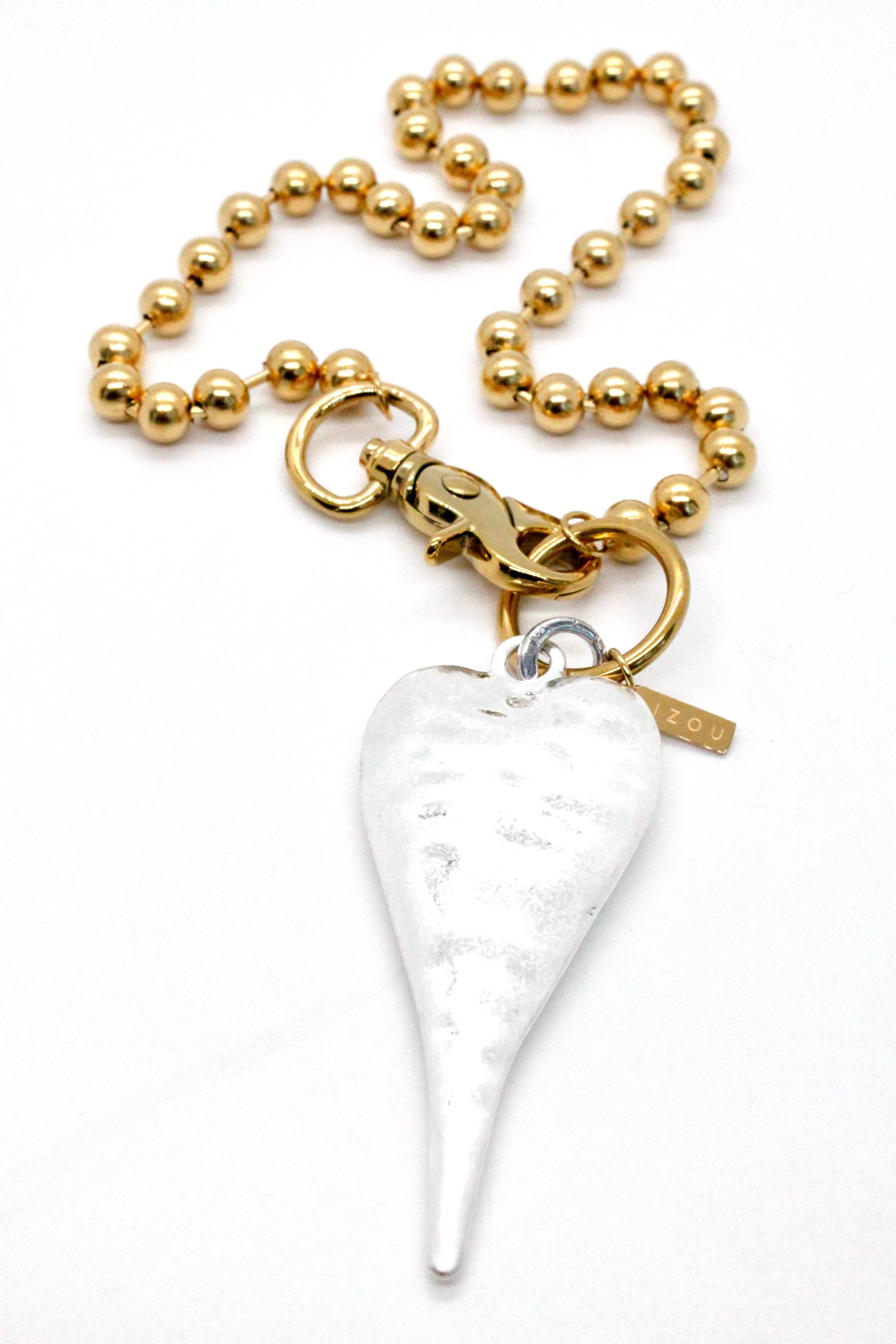 Colar Coração Prata Extra Grande Corrente Única Prata Fecho Garra