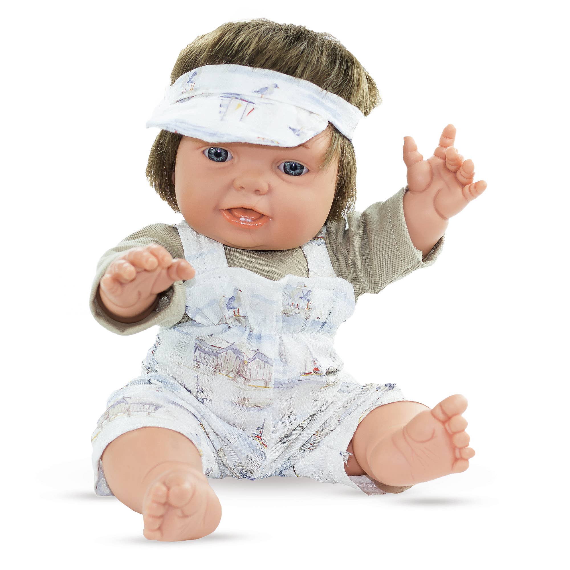 Bebé de textura suave e cheiro a baunilha. C.B: 8426099465230 Referência: 46523 Altura: 47 cm Fabricado em: Espanha Marca: Magic Baby Material: Corpo de vinil Cor do cabelo: Com cabelo Cor dos olhos: Verdes Tipo de olhos: Não móveis Recomendado: Maiores de 3 anos Peso Aproximado: 0,890 kg Menina com cabelo. Vestido fabricado em algodão. Os seus olhos são de cor verde. Inclui sapatinhos e chupeta. Boneca anatomicamente correta. Apresentado numa caixa divertida, que simula uma oficina de bonecas. Caixa ecológica fabricada em material reciclado.