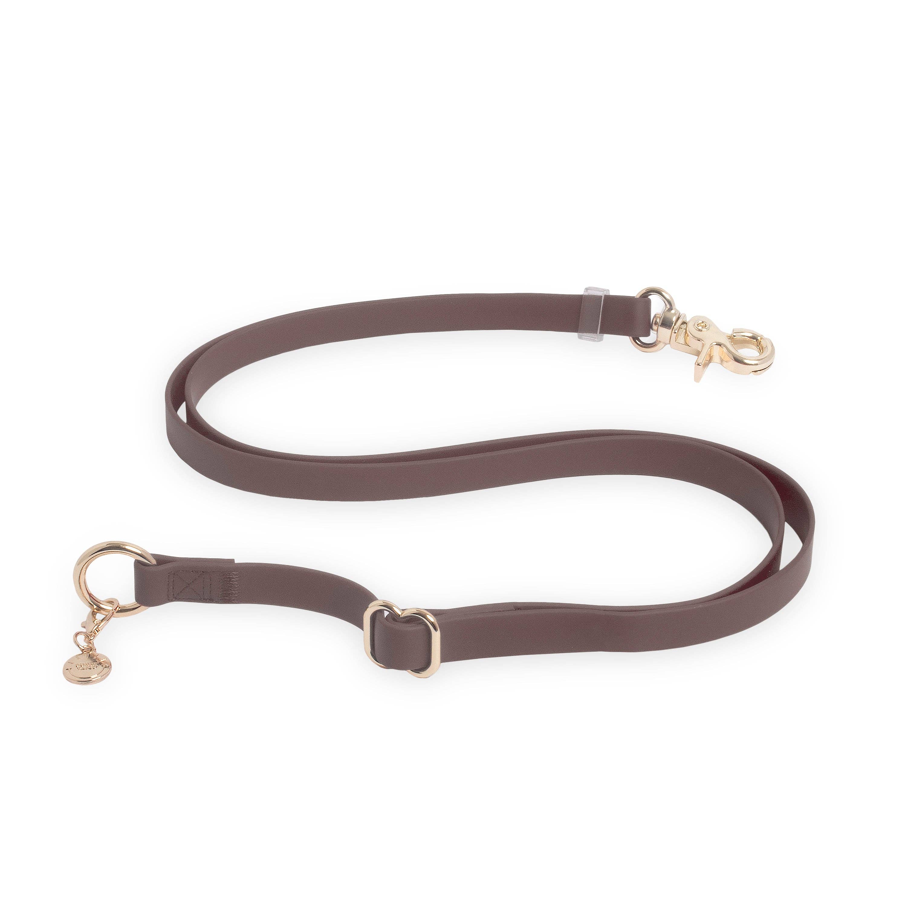 Descubra nossa coleira Cloud ultra leve, macia como manteiga, resistente a odores e à prova de todas as condições climáticas. Desenvolvida com uma fita 100% vegana revestida de PVC, testada para suportar aproximadamente 340 kg de tração. ULTRA LEVE E CHIQUE Fácil de segurar, durável e leve como uma coleira de tecido - você vai querer usar esta coleira em todos os passeios. Projetamos esta coleira com ferragens de metal dourado claro, minimalistas e de luxo, que não enferrujam nem mancham o pelo do seu pet. DETALHES Disponível em 3 comprimentos para passeios diários e 3 cores personalizadas - 1,2 m, 1,5 m ou 1,8 m. Combine esta coleira com nosso suporte para sacos de lixo que pode ser fixado ao argola em D. A coleira acompanha um pingente de metal removível com o logo para um visual minimalista.