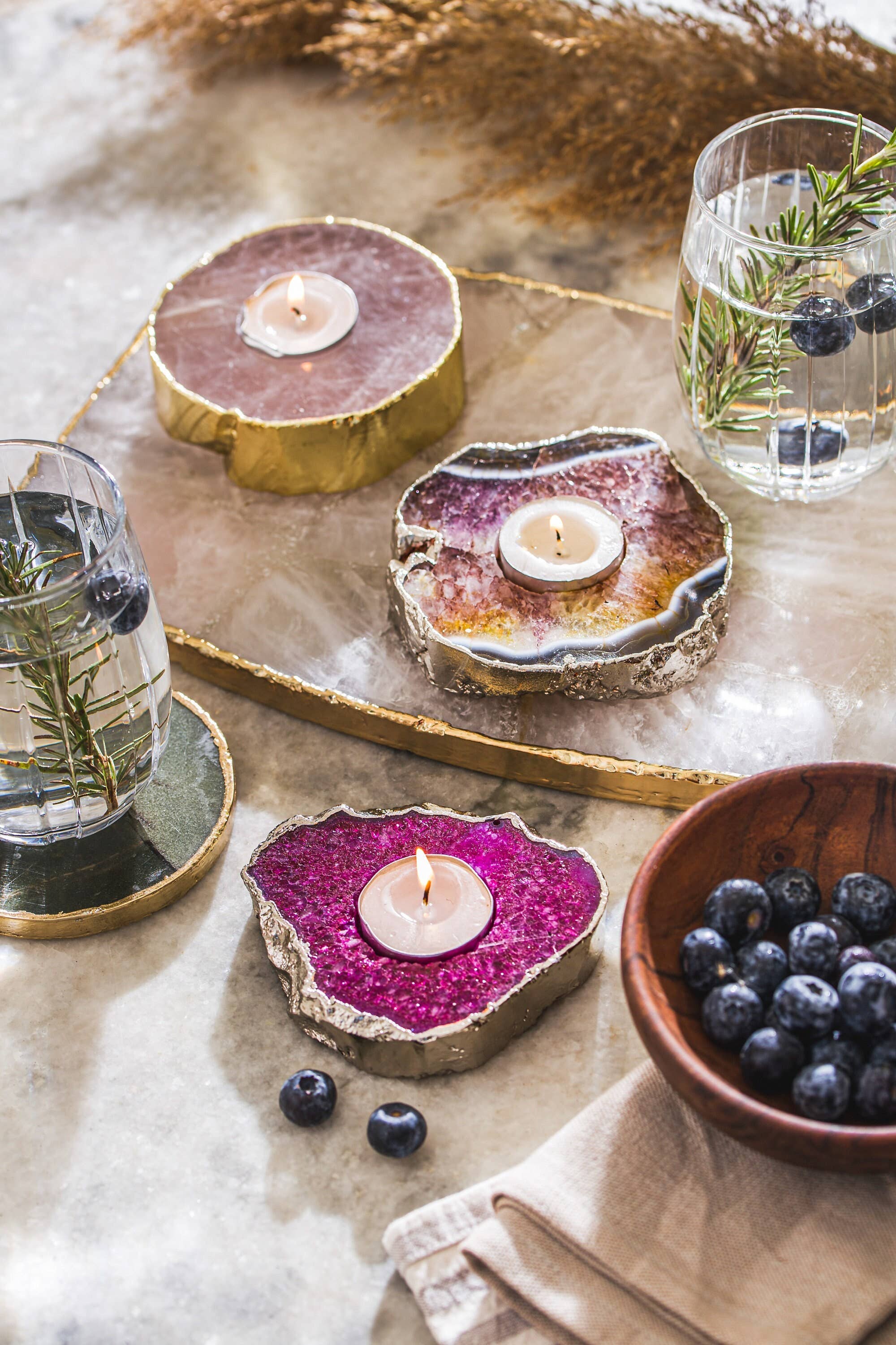 Suporte de luz de chá de vela de ametista, pedra de cristal roxo