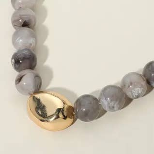 Colar de Contas com Esferas de Metal e Pedra Natural