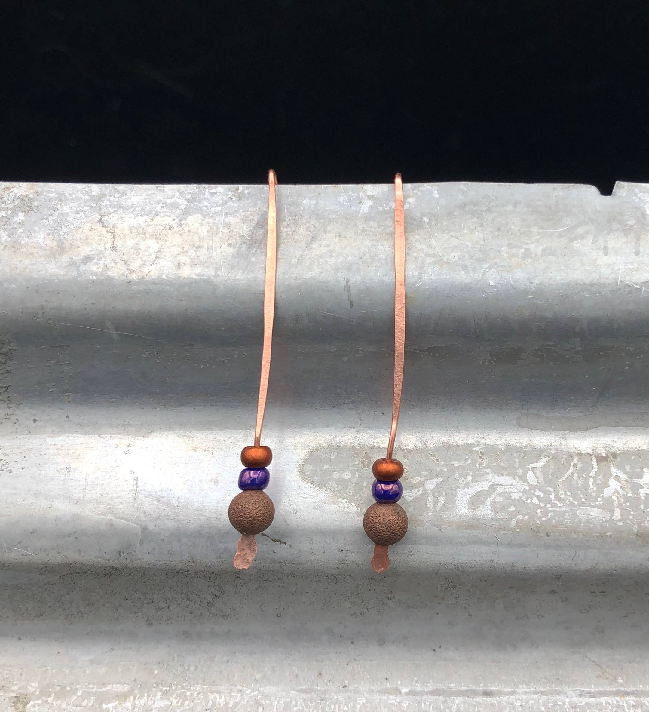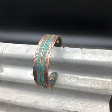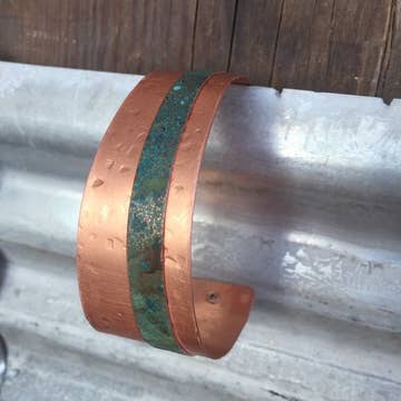 2,5 cm de largura. Cobre envelhecido rústico reciclado sobre zinco martelado.