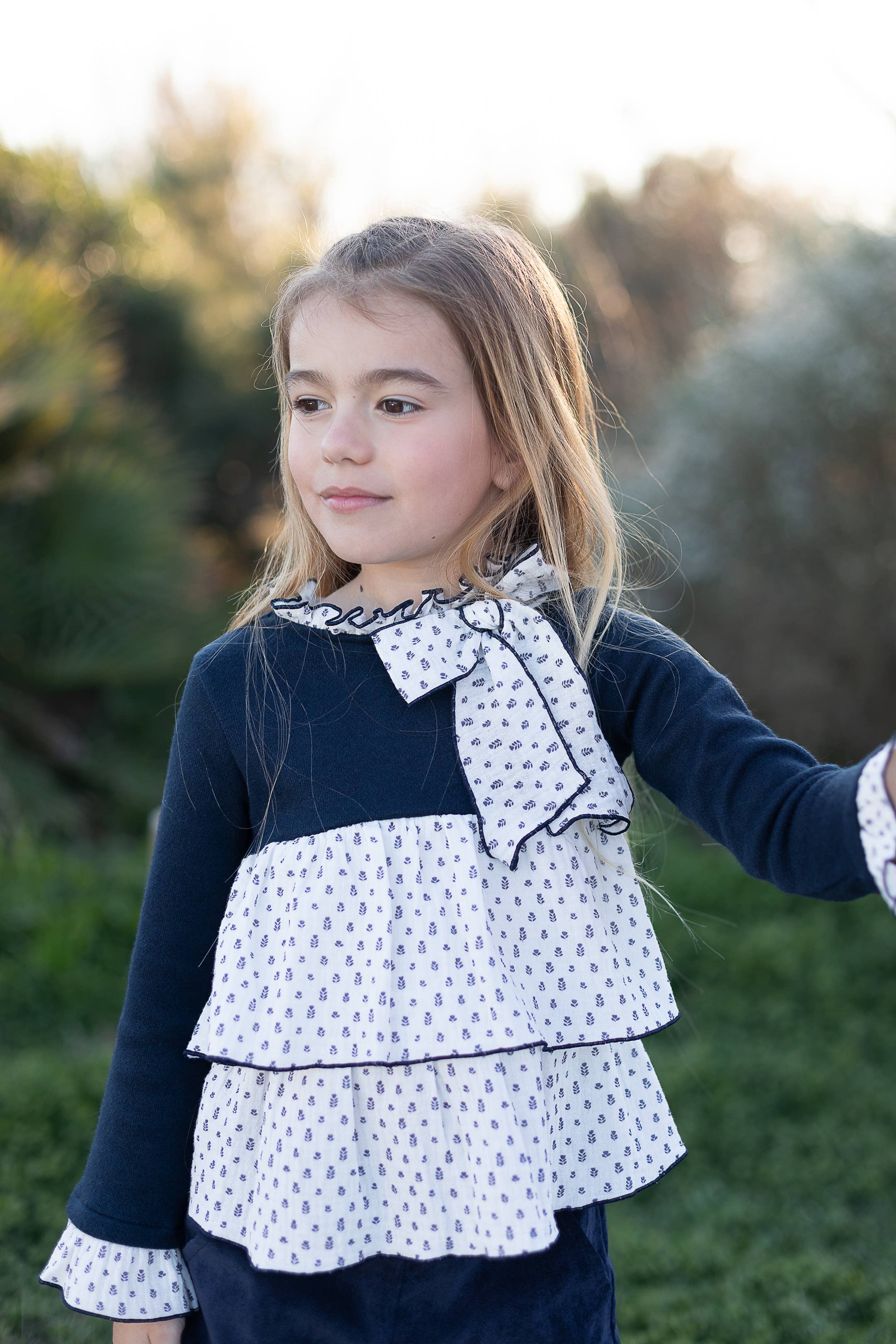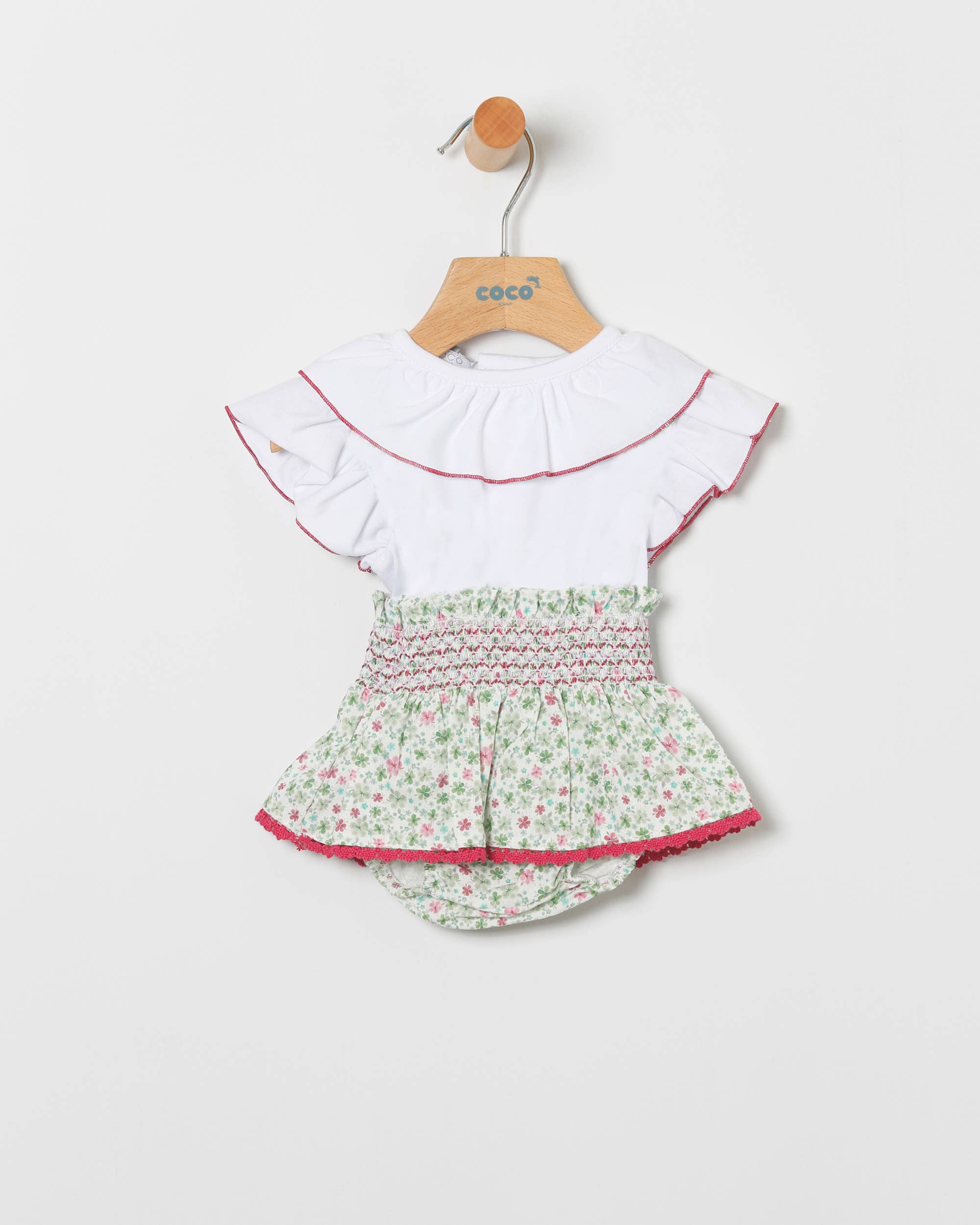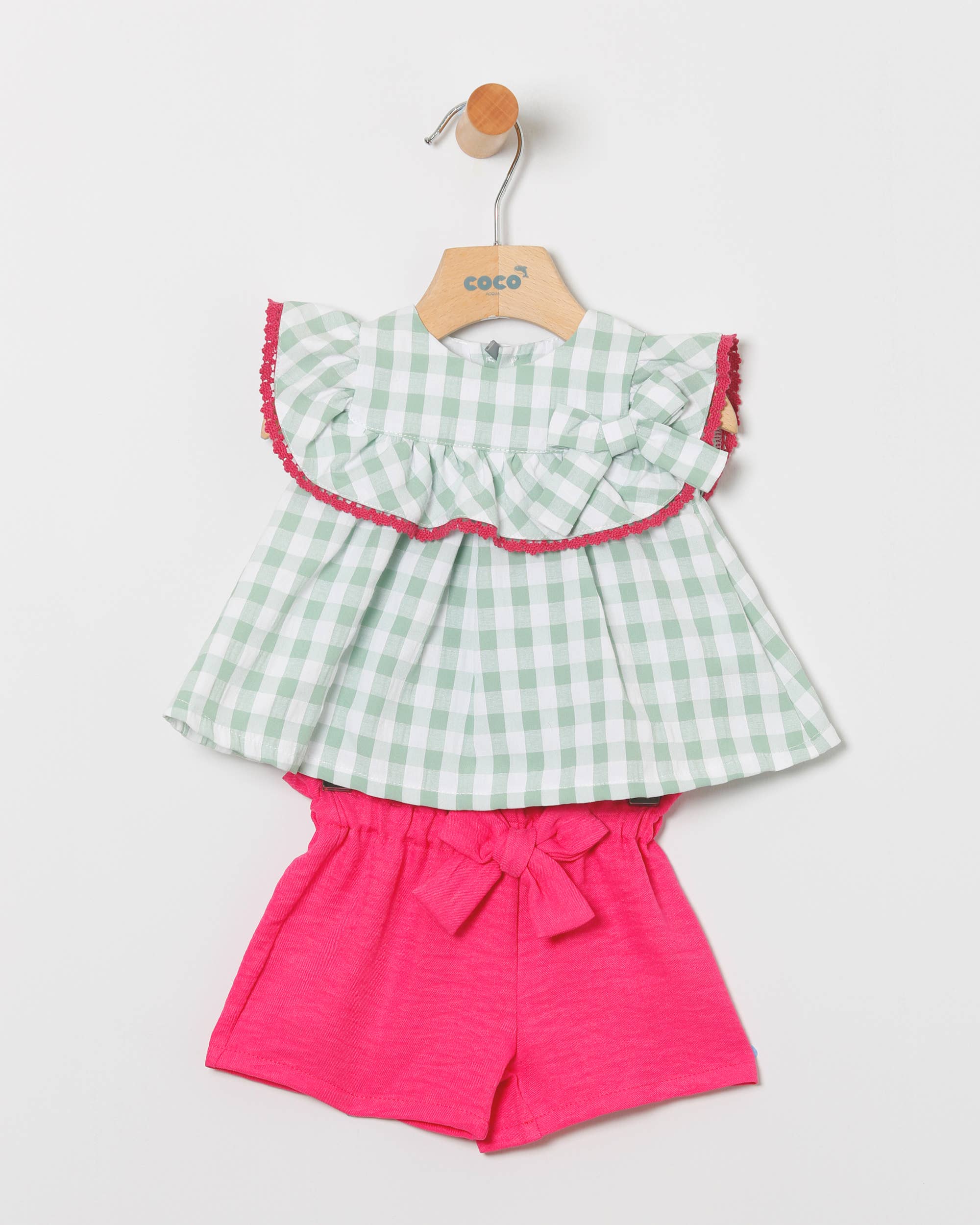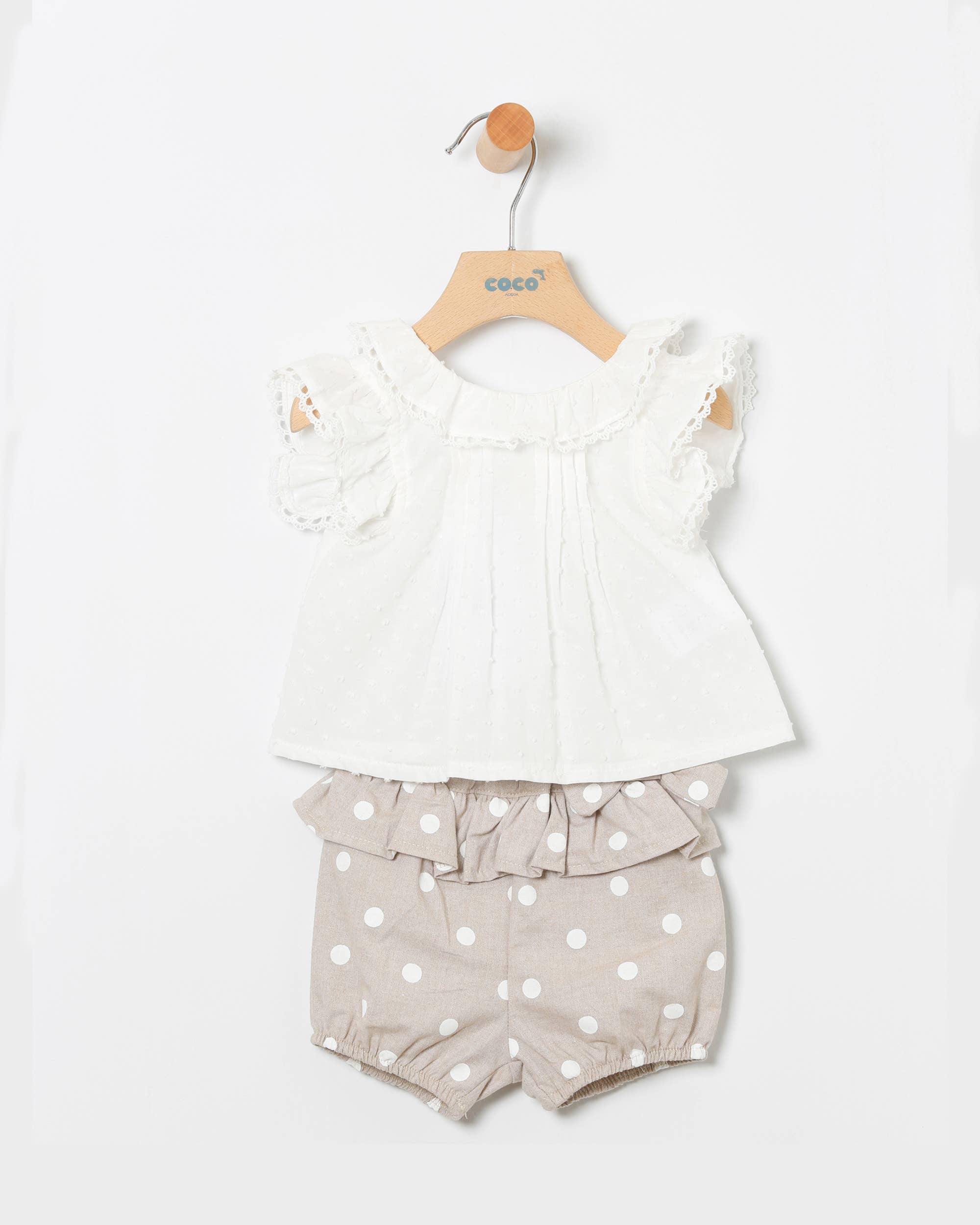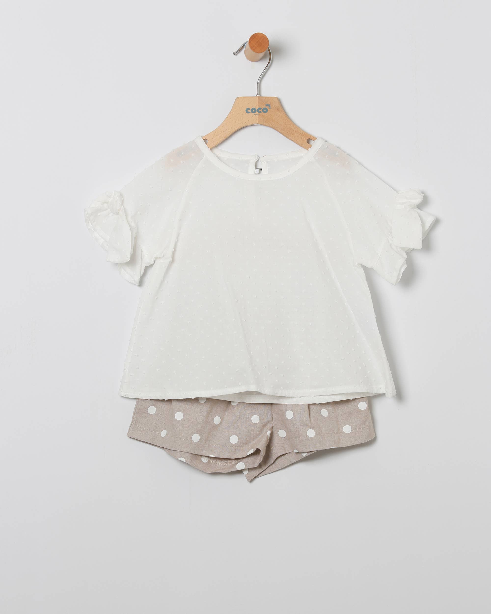 Conjunto Menina Blusa Em Branco E Bermuda Linho Bolinhas Brancas