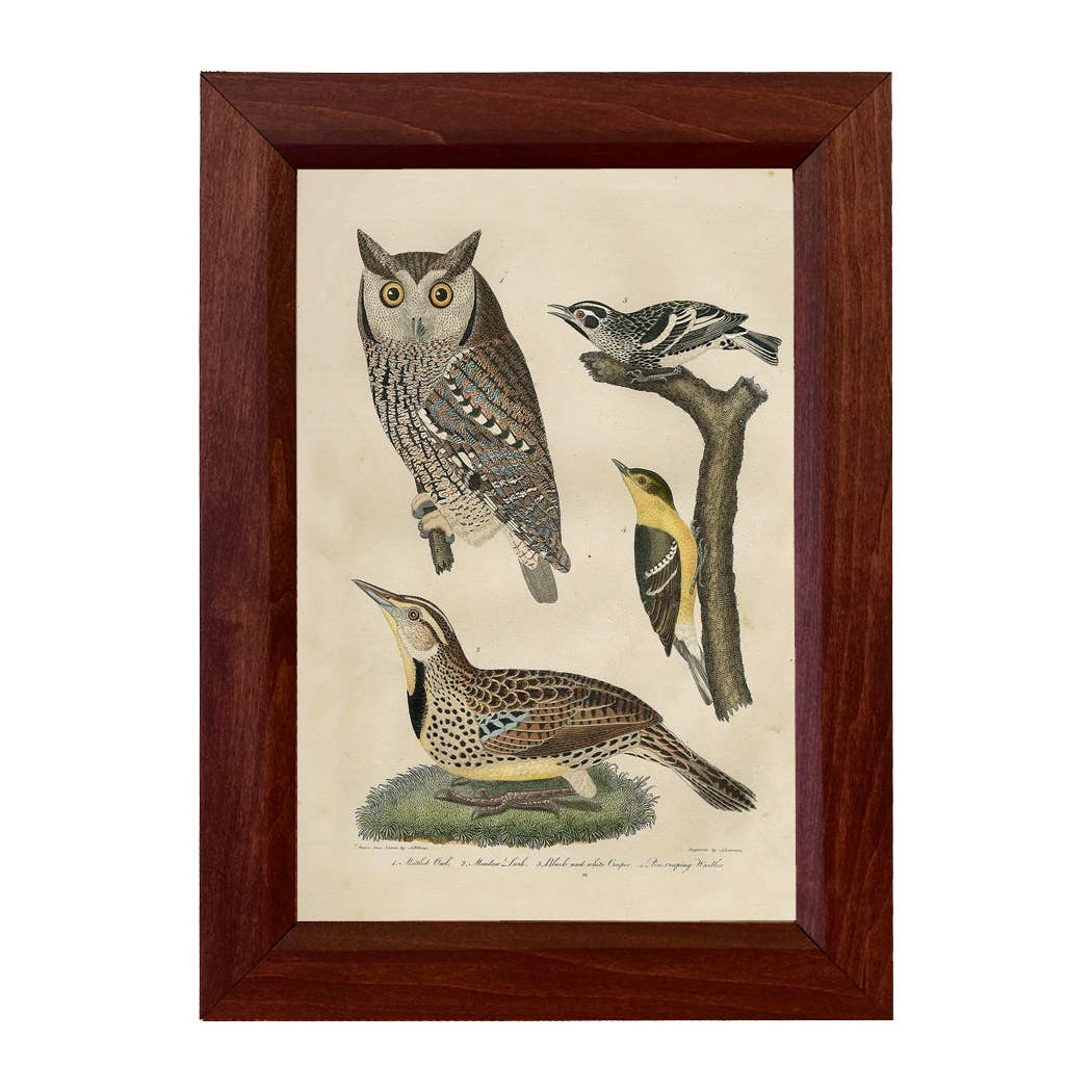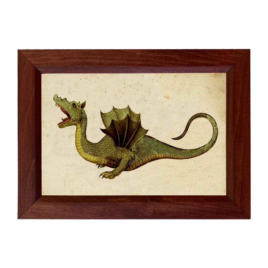 Ilustração a cores impressa em papel fotográfico acetinado. A moldura é de madeira de manga castanho-avermelhada angustiada com uma borda interior chanfrada. A parte de trás é finalizada com papel artesanal 100% reciclado e um cabide dente de serra. Fabricado nos EUA. • Impressão: 6-1/2 x 10" • Tamanho da moldura acabada: 8-1/2 x 12" • Largura da moldura: 1-1/4" • Espessura da moldura: 5/8" (Variações nos padrões de grão de madeira de manga e absorção de manchas produzirão uma aparência única e individual, portanto, não há duas molduras exatamente iguais.)