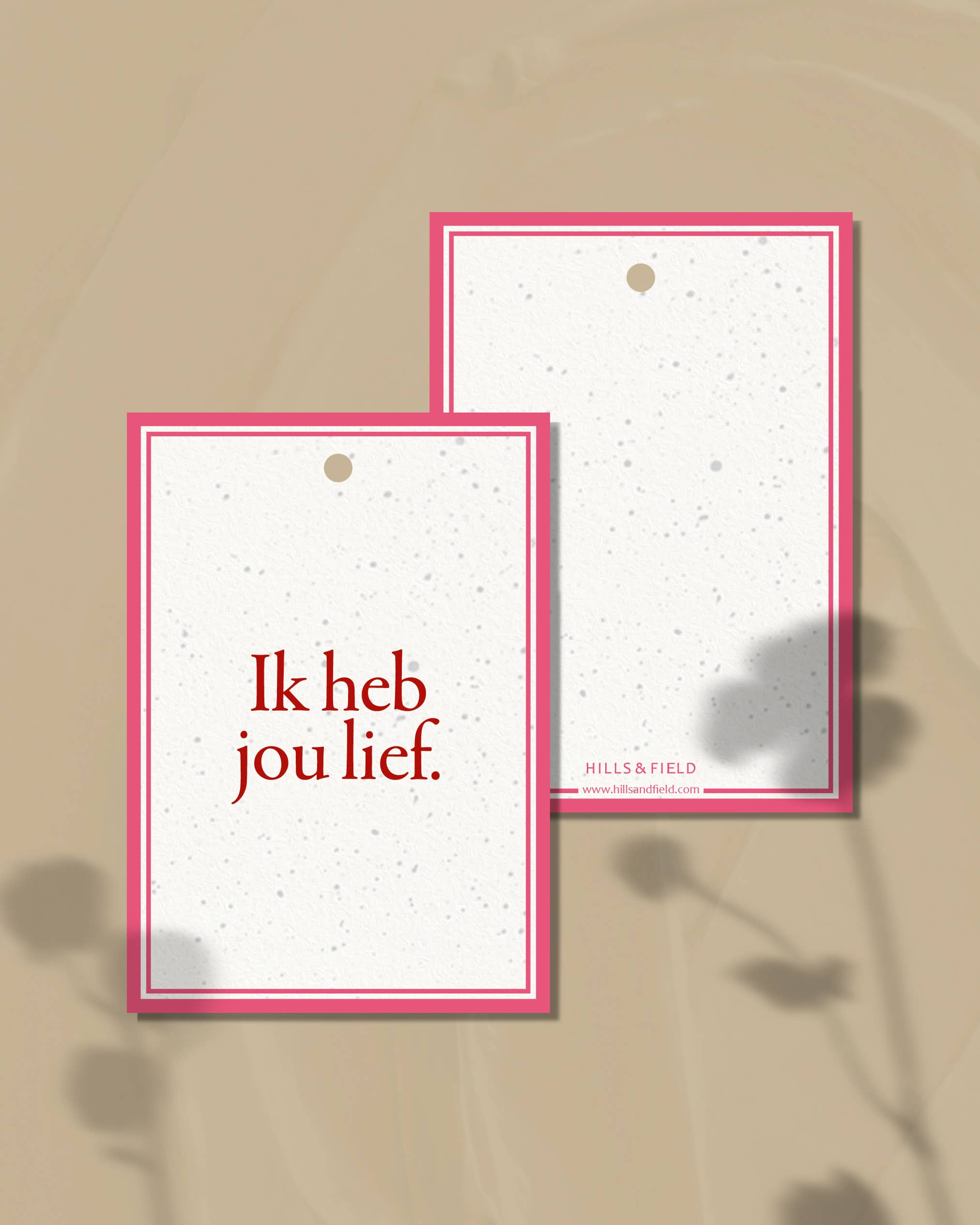 Etiqueta de oferta do tamanho A7 com punchhole de 5 mm. Adequado para todas as ocasiões. Esta série de cartões tamanho A7 é impressa em papel luxuoso de 300 mg Old Mill, feito de polpa ECF amiga do ambiente, não revestida com certificação FSC®.