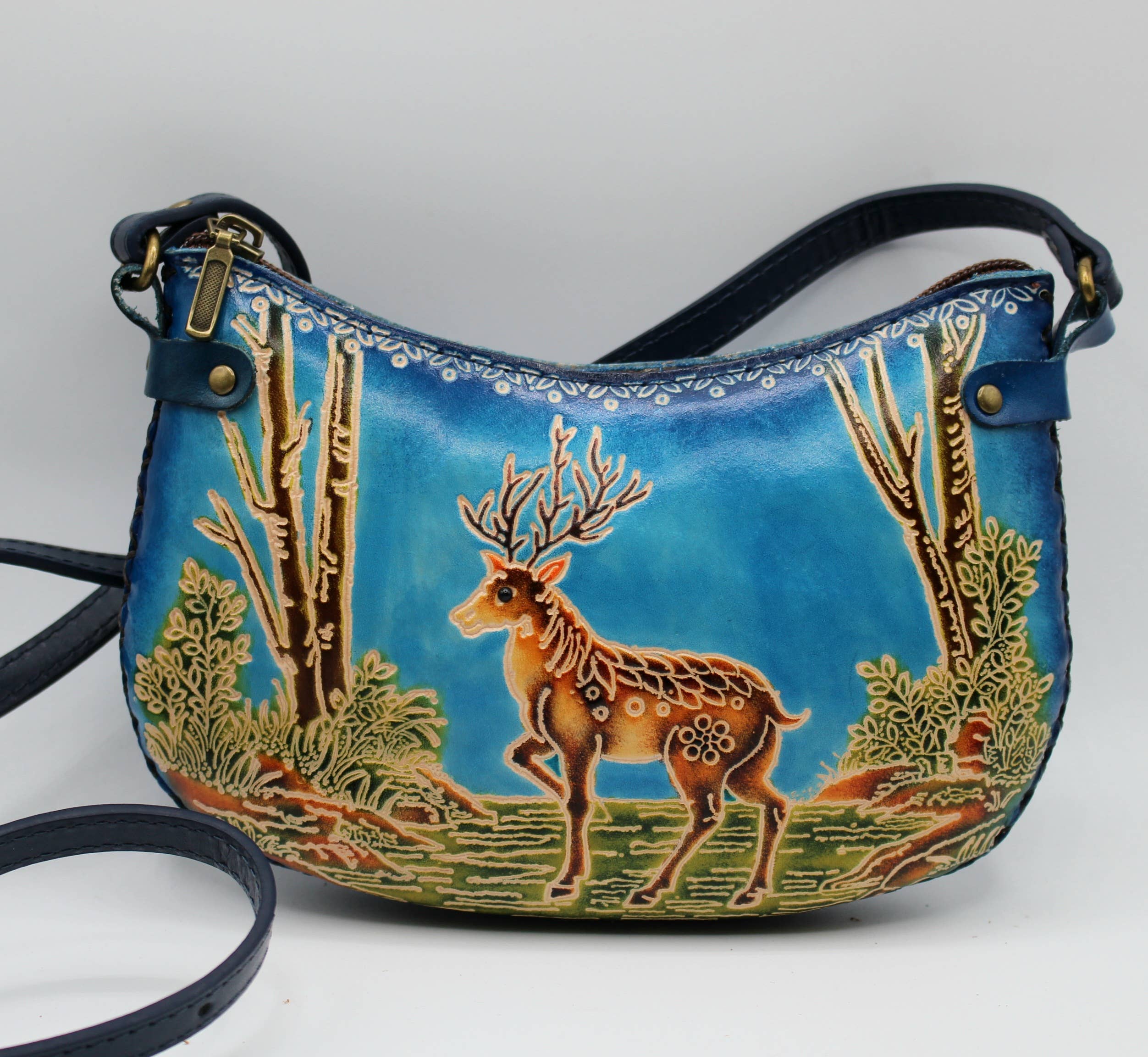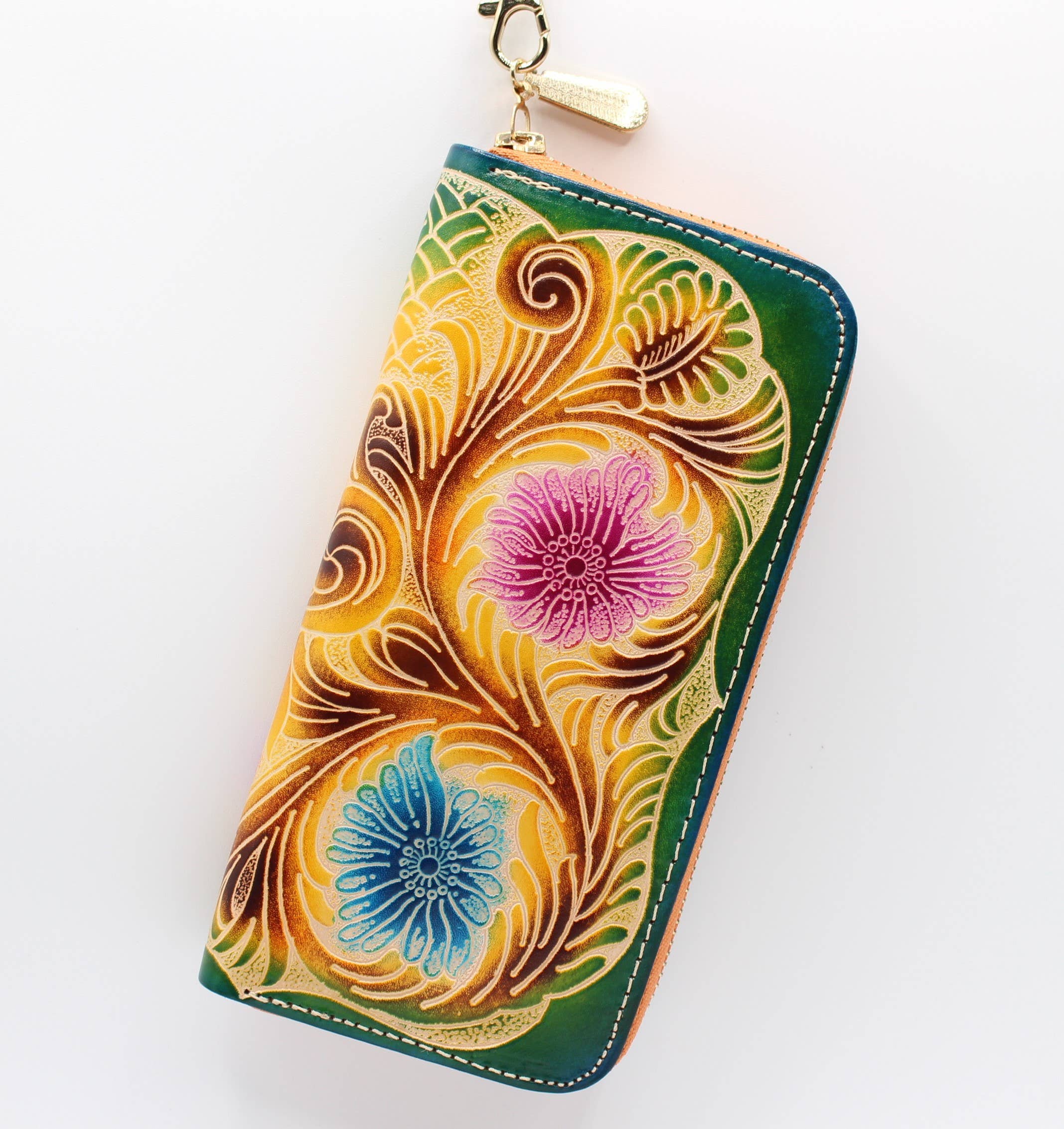 As nossas carteiras extra-grandes de uso múltiplo são ótimas para levar na sua mala ou sozinhas. Criadas a partir de couro genuíno premium com designs feitos à mão. Fecho de correr resistente com alça de pulso anexada. No interior, há vários compartimentos para transportar notas, cartões de crédito, moedas, talões de cheques e muito mais! O tamanho é de 8" de largura por 4,5" de altura e 1,5" de profundidade. Cor: azul.