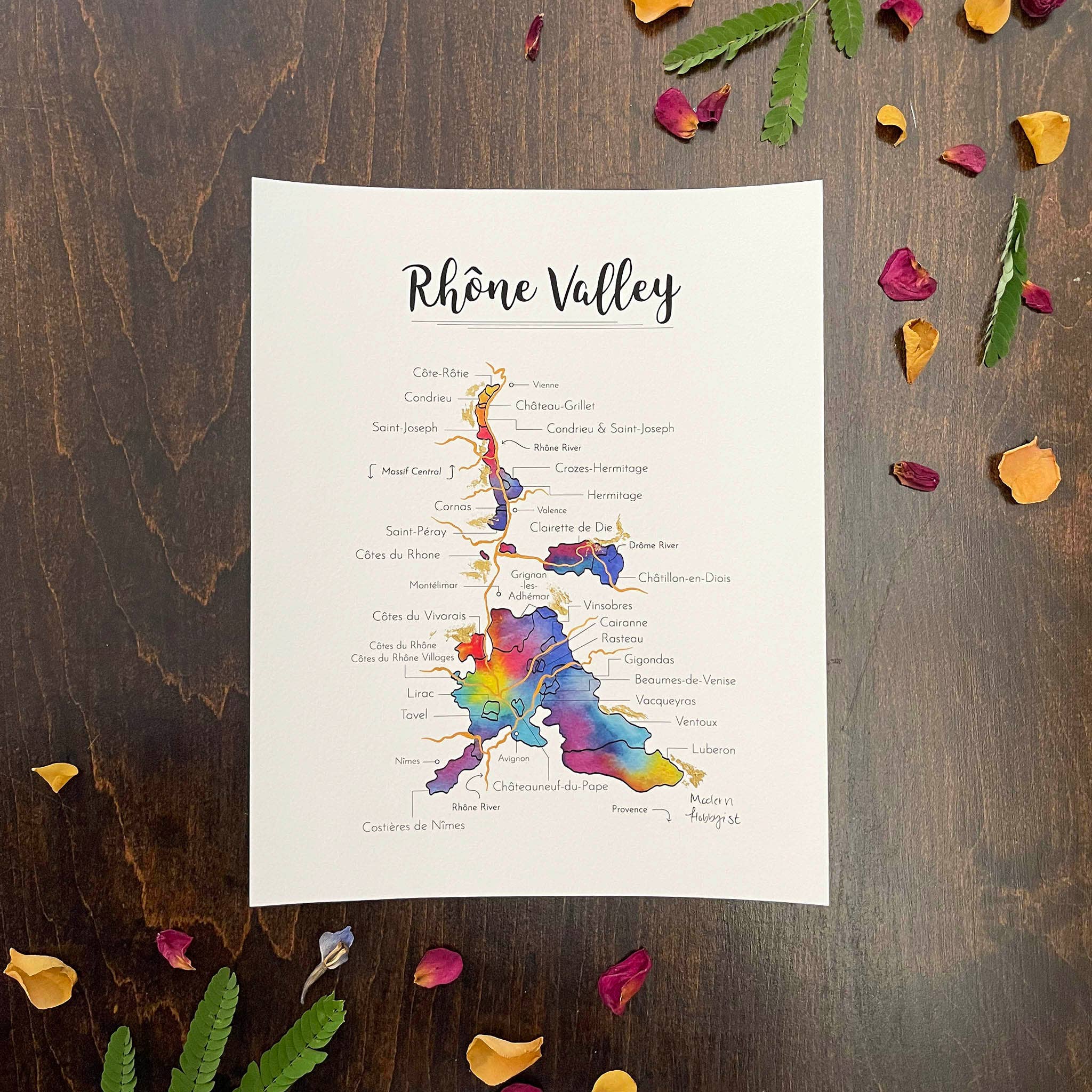 O nosso mapa abrangente de vinhos da Califórnia é ideal para entusiastas de vinho de todos os níveis. Destaca as principais regiões vinícolas da Califórnia e as suas características geográficas de uma forma artística, mas informativa. Cada impressão em aguarela é habilmente acabada à mão com camadas de acrílico líquido bronzeado e tinta dourada, resultando numa impressão verdadeiramente única. Exiba o seu amor pelo vinho em qualquer divisão, seja na sua sala de estar, cozinha, escritório ou acima do seu bar em casa!
