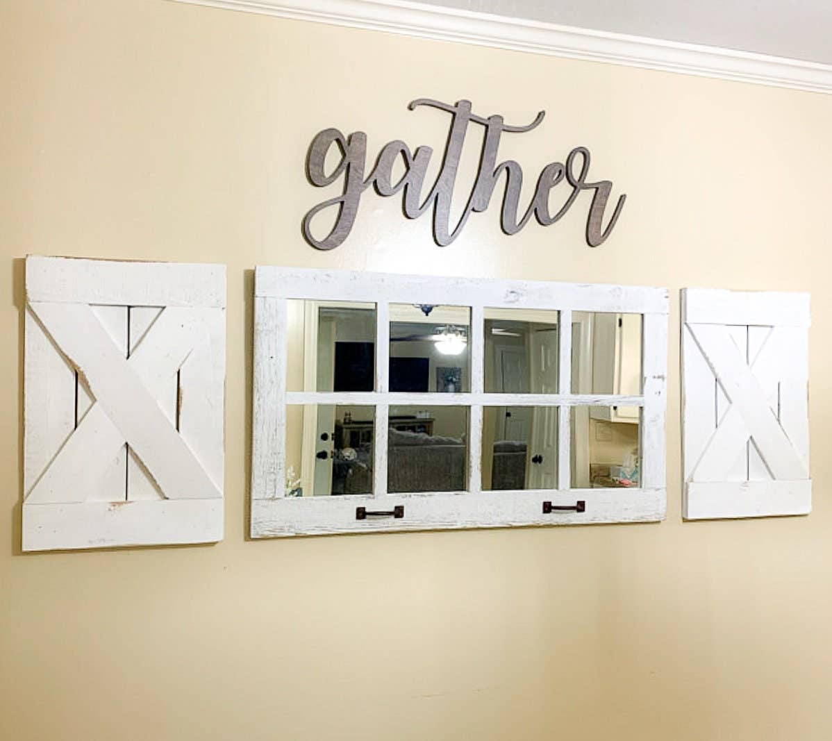 8 painel Farmhouse Wall Decor Janela Espelho - Janela Rústica
