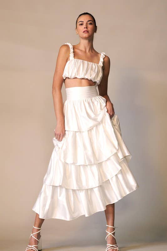 Esta camisola de alças apresenta um decote direito com um impressionante design de corda dourada, acrescentando um toque de elegância e profundidade. A parte superior é fluida e leve, tornando-a confortável e arejada para climas mais quentes. Um detalhe de fita no topo pode ser atado para um ajuste personalizável, enquanto um botão nas costas garante um fecho seguro. ****Calças a condizer LP1642.****