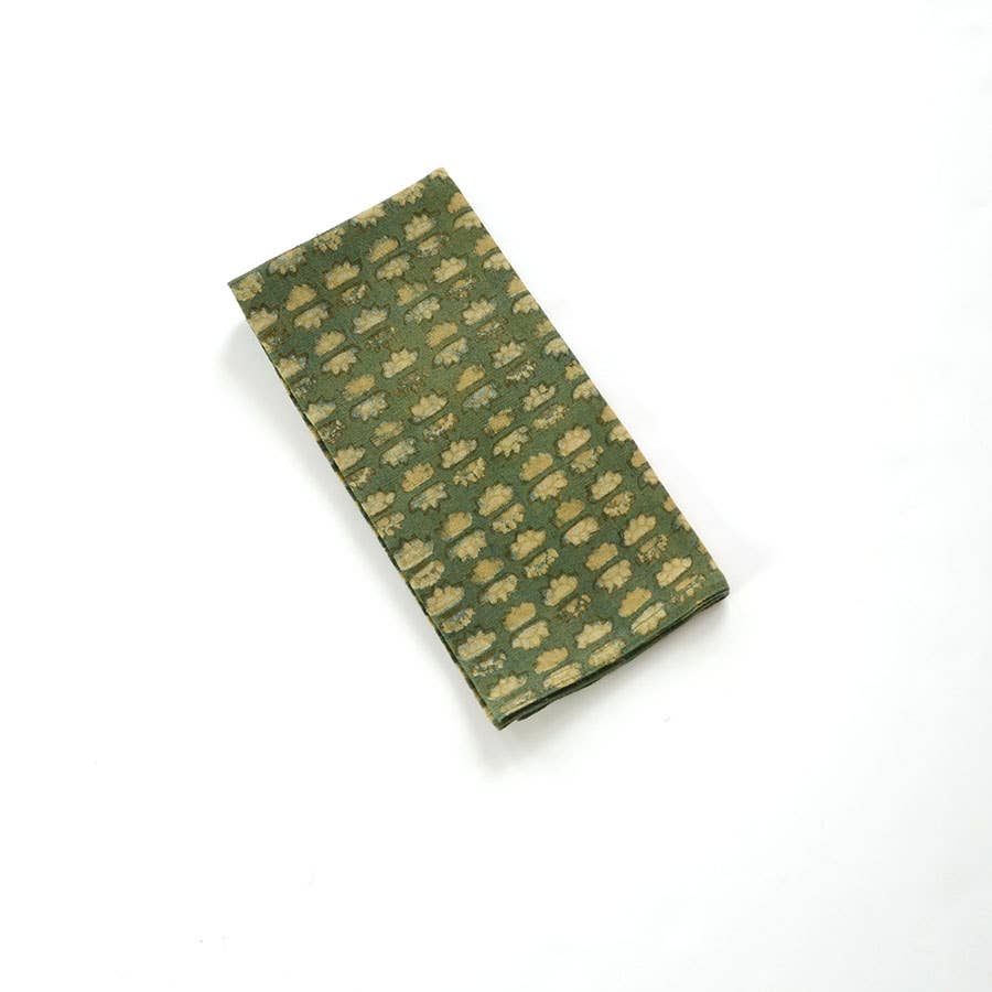 Estamos obcecados com esta cor de terracota que passámos pela nossa experimentação este ano! Estes guardanapos de algodão orgânico são impressos à mão com uma resistência de lama. Esta técnica chama-se Dabu. Através do processo de impressão e re-impressão e tingimento natural - obtivemos cores tão bonitas de rosa, verde-claro e terracota. São fáceis de lavar e reutilizar! Combina bem com a nossa Toalha de Mesa Sesque-Me-Não. bloco impresso à mão com um bloco de madeira esculpido tingido à mão em Corantes Naturais cor - terracota tecido - algodão orgânico Tamanho - 19" x 19" História artesanal: Impressão em bloco -------------------------------------------------------------------------- CUIDADO: Lavar à mão ou à máquina em ciclo suave a frio para as primeiras lavagens. Colocar plano a secar. Ferro, se necessário.