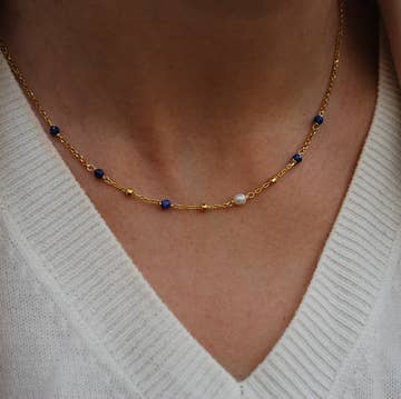Uma peça longa em camadas de boho que pode usar a qualquer momento. Uma mistura de pérolas acrílicas e contas de vidro entre estações de cornetas brilhantes e sinuosas. Para as parcimoniosas, estetas de coquete, avós costeiras, vãs de praia e clubes kids com destino a Ibiza. 24" com uma corrente extensora de 3" e etiqueta de logótipo personalizada. Feito à mão em San Antonio, TX.