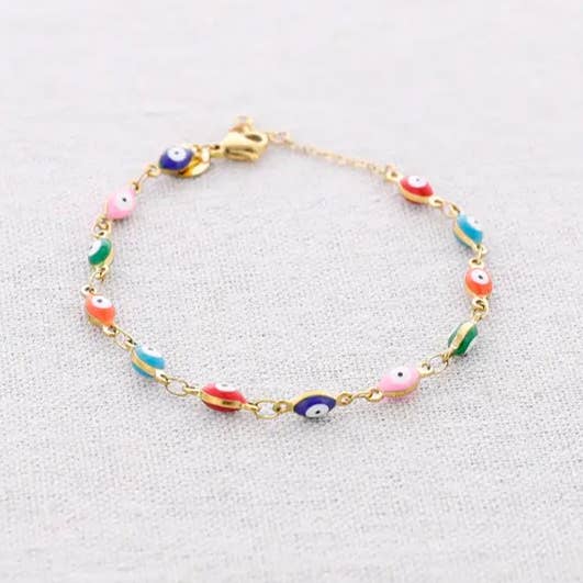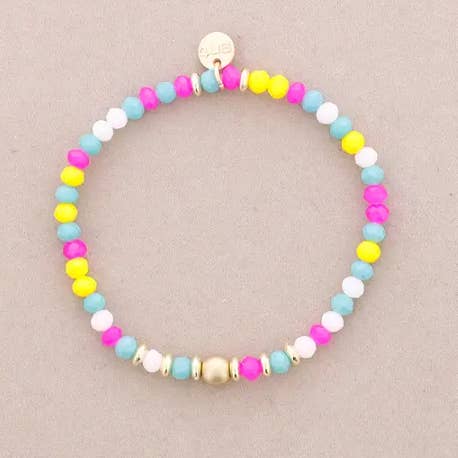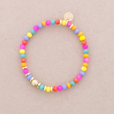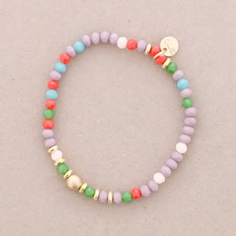 Pulseira elástica com coração metálico e cristais facetados