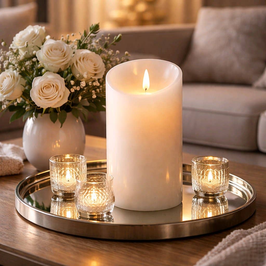 Creme Non Drip Moving Flame 3 Wick LED Candle 6in por 6in