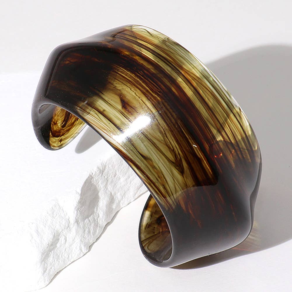 • Tamanho: 2" A • Elástico • Destaque-se com esta pulseira larga e ousada, com uma superfície lisa e polida e um design marcante com efeito de mármore. Perfeita como acessório de destaque, esta peça versátil adiciona um toque de elegância moderna e estilo artístico tanto a roupas do dia a dia quanto a looks para ocasiões especiais. • Compatível com chumbo e níquel