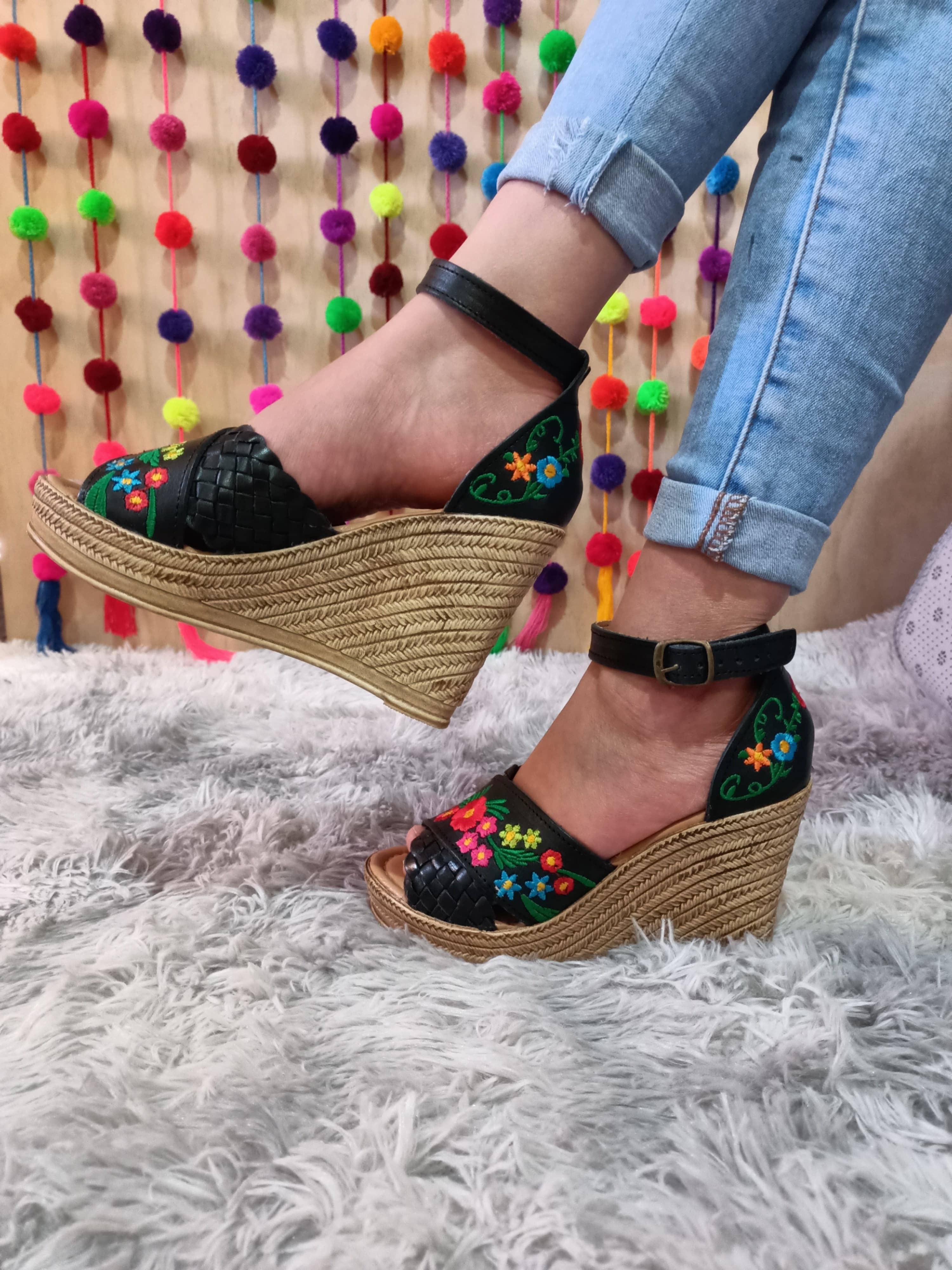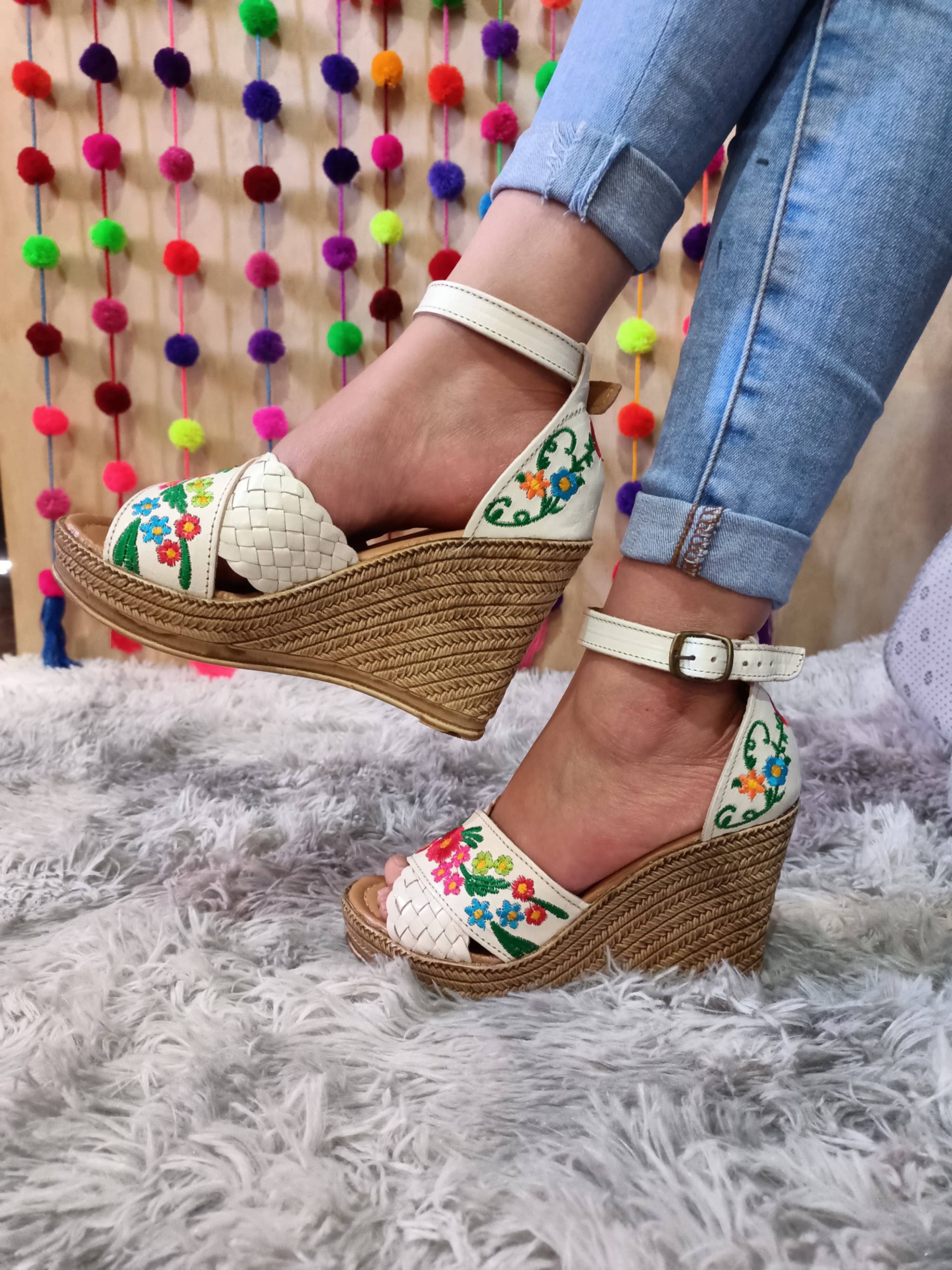 Ainda não existem opiniões para Sandálias de Cunha em Pele Bordadas com Flores Mandala.