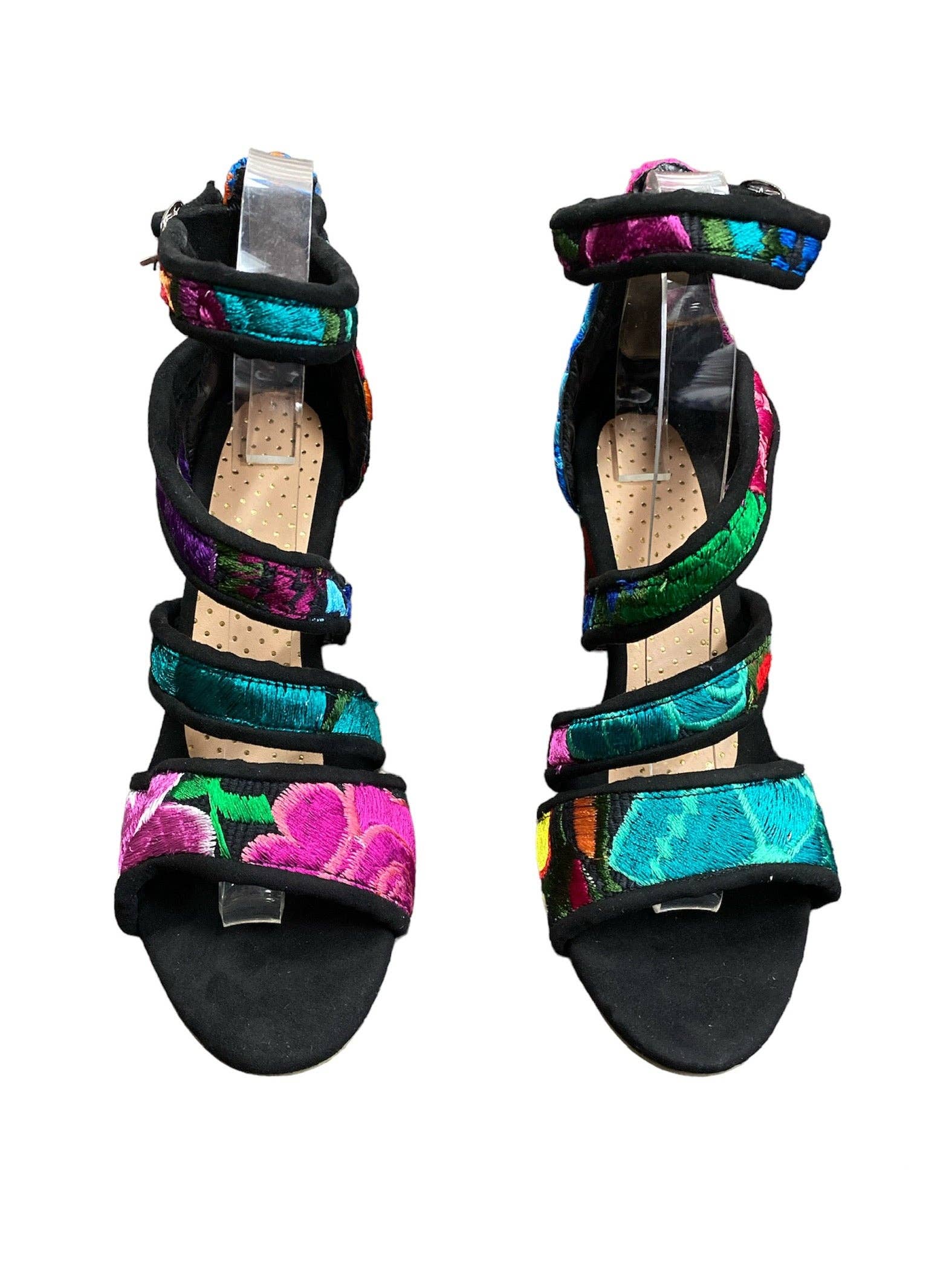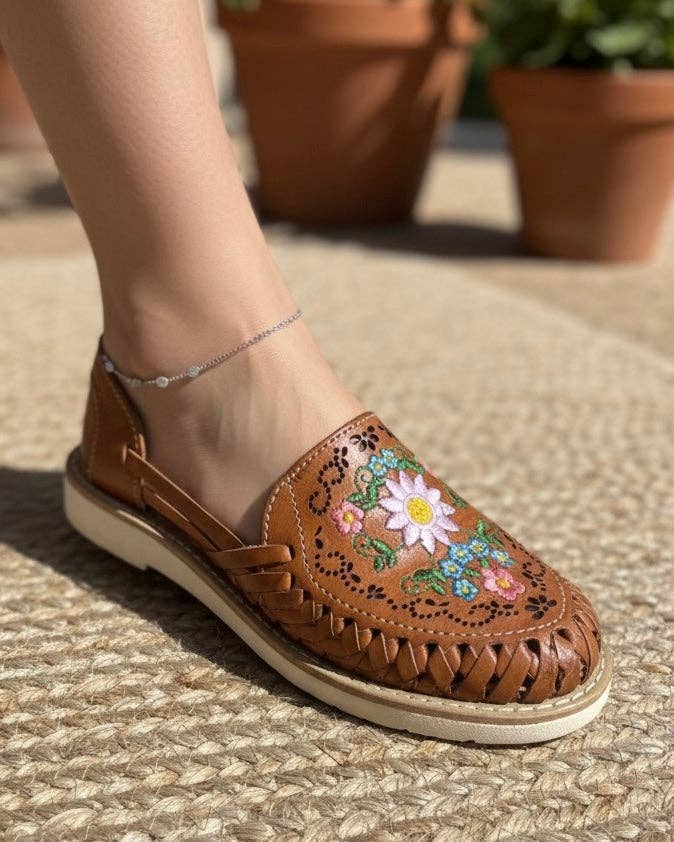 Sandálias de Cunha em Pele Bordadas com Flores Mandala