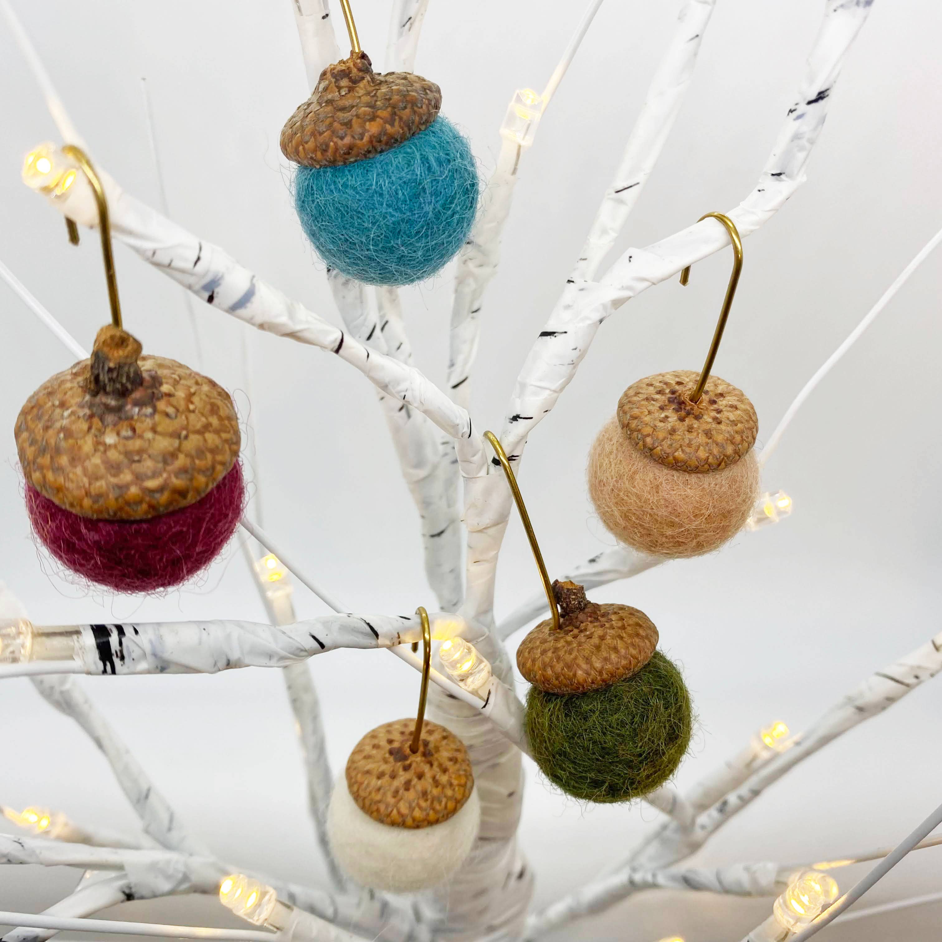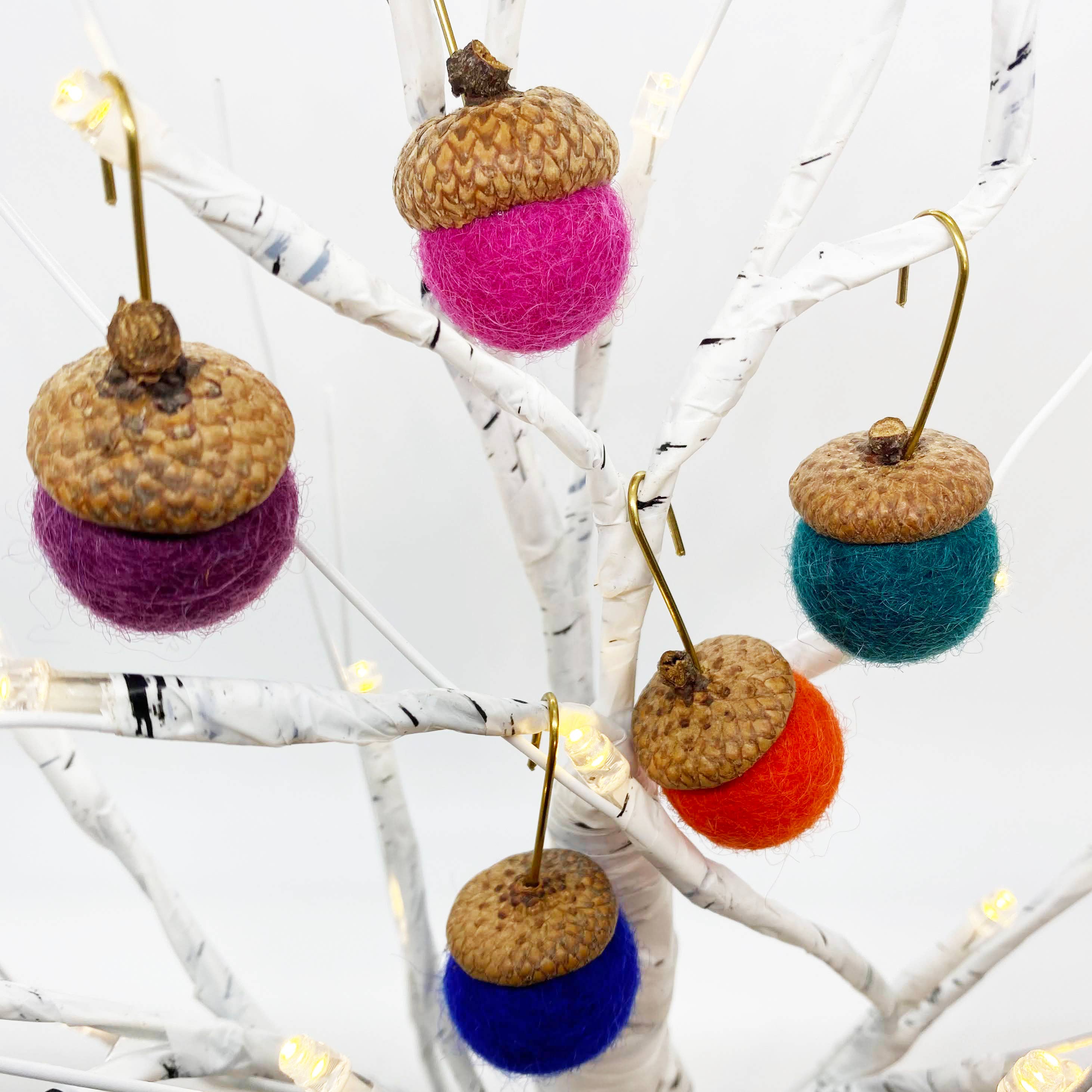 Conjunto de 5 Ornamentos de Bolota de Lã de Feltro - Folhas de Outono