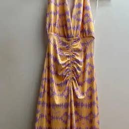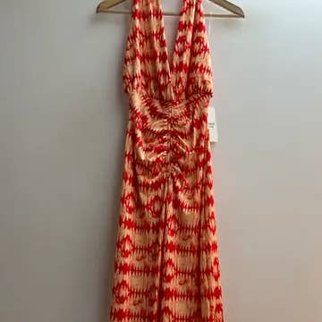 Vestido longo simples e sem mangas, com fenda frontal e detalhe torcido. Tamanho único que se ajusta a todos. Produzido na Itália.