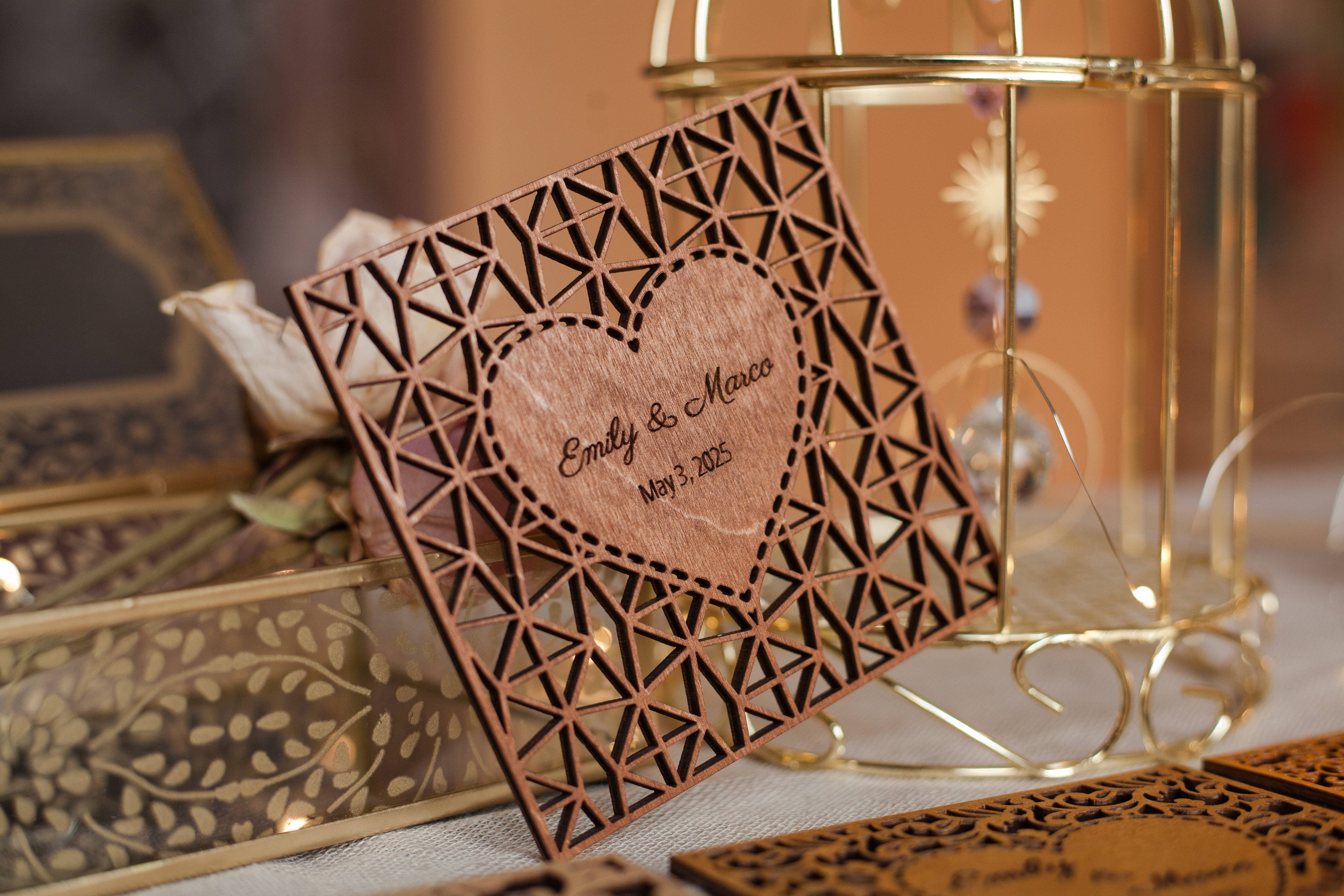 Álbum de Casamento em Madeira com Motivo Floral – Livro de Memórias Personalizado para Convidados