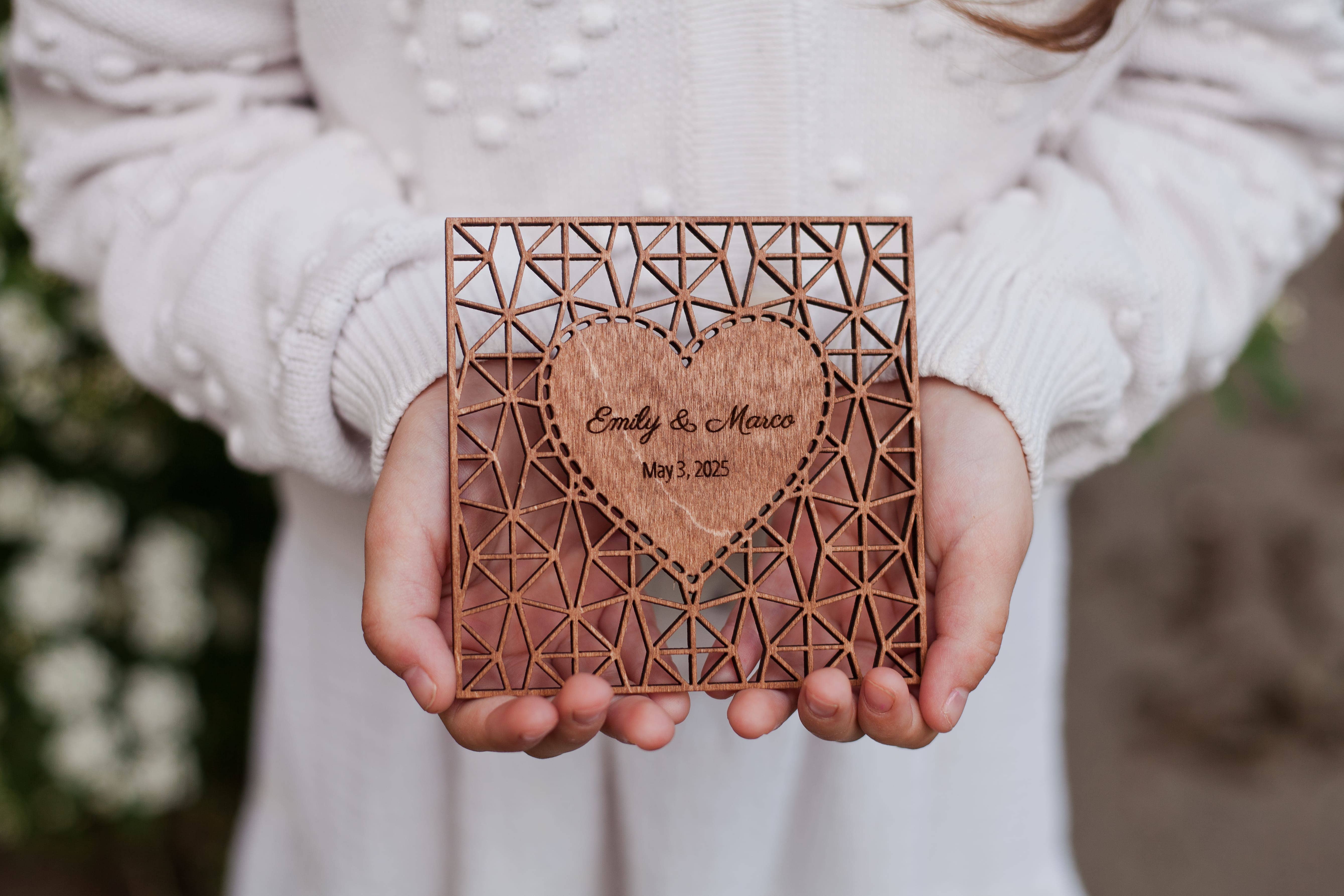 Celebre o amor e a natureza com o nosso álbum de fotos de madeira floral lindamente trabalhado, perfeito para casamentos, aniversários ou ocasiões especiais. A capa é adornada com um design de flores silvestres a cores, tornando-o uma recordação romântica para casamentos no jardim ou na primavera. 📌 Características: Tamanhos: A 4 cm 12x8” ou A 5 cm 6x8” Nomes e data gravados a laser + impressão UV a cores Este álbum de fotos é totalmente personalizável com quaisquer nomes, data ou citação curta. Ótimo como presente para noivos, livro de convidados ou álbum de memórias. À procura apenas da capa de madeira? Contacte-nos para encomendas especiais ou grandes lotes personalizados com o seu design.
