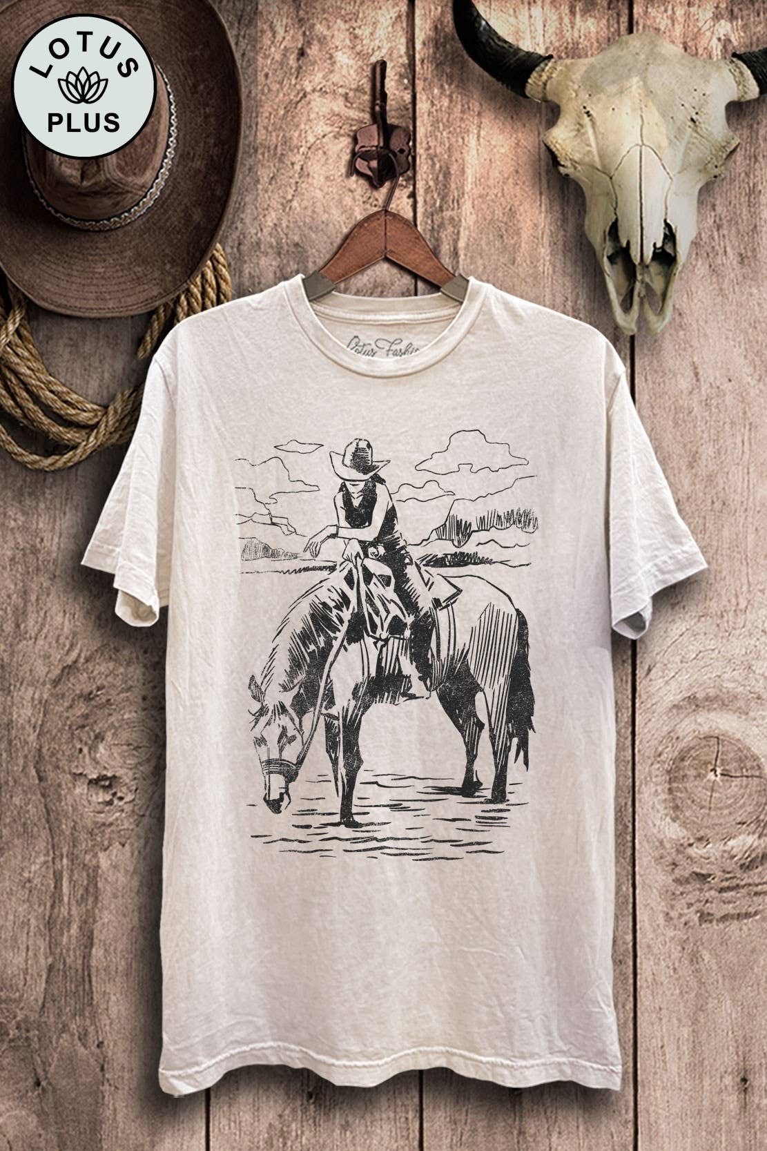 The Lotus Boyfriend Tee/Mineral Washed - Camiseta gráfica de manga curta com gola redonda, solta em todos os lugares certos com mangas ligeiramente caídas. Feito no nosso tecido macio 100% algodão - Mineral Washed. Os gráficos e as principais etiquetas são impressos em serigrafia interna na sede da fábrica de impressão Lotus Fashions em Los Angeles.