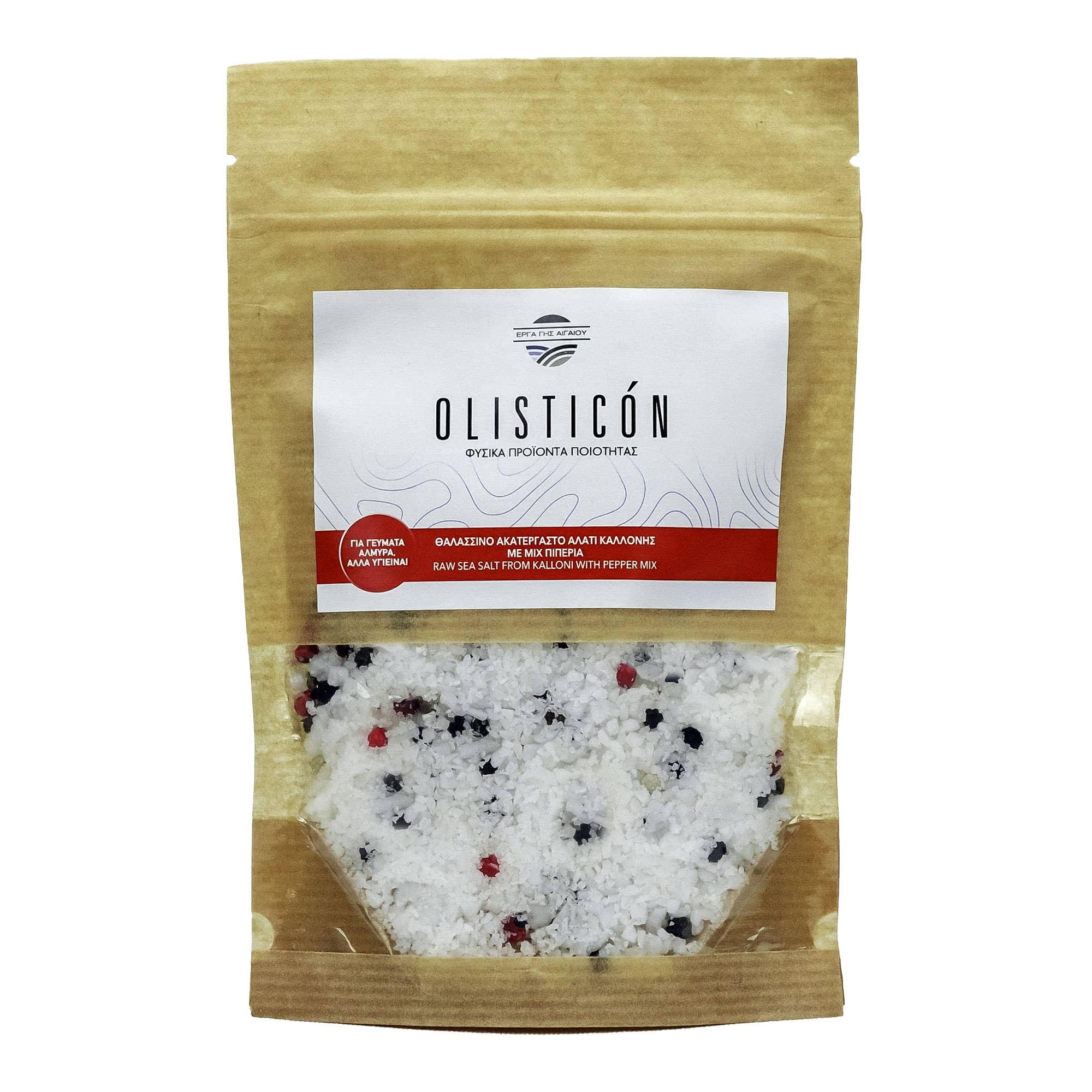Sal marinho natural não refinado das salinas de Kalloni na Ilha de Lesvos. Sem conservantes - Não processado - Sem glúten - Produto 100% natural OLISTICON sal marinho não refinado é um sal de alta qualidade colhido à mão em pequenos flocos. O nosso sal é recolhido da "Lagoa de Aristóteles", que são as salinas da Baía de Kalloni. O sal marinho natural Olisticon é rico em minerais traço, que contribuem para o equilíbrio holístico do corpo humano. Portanto, o nosso sal marinho constitui um condimento nutritivo para uma dieta saudável e deliciosa.