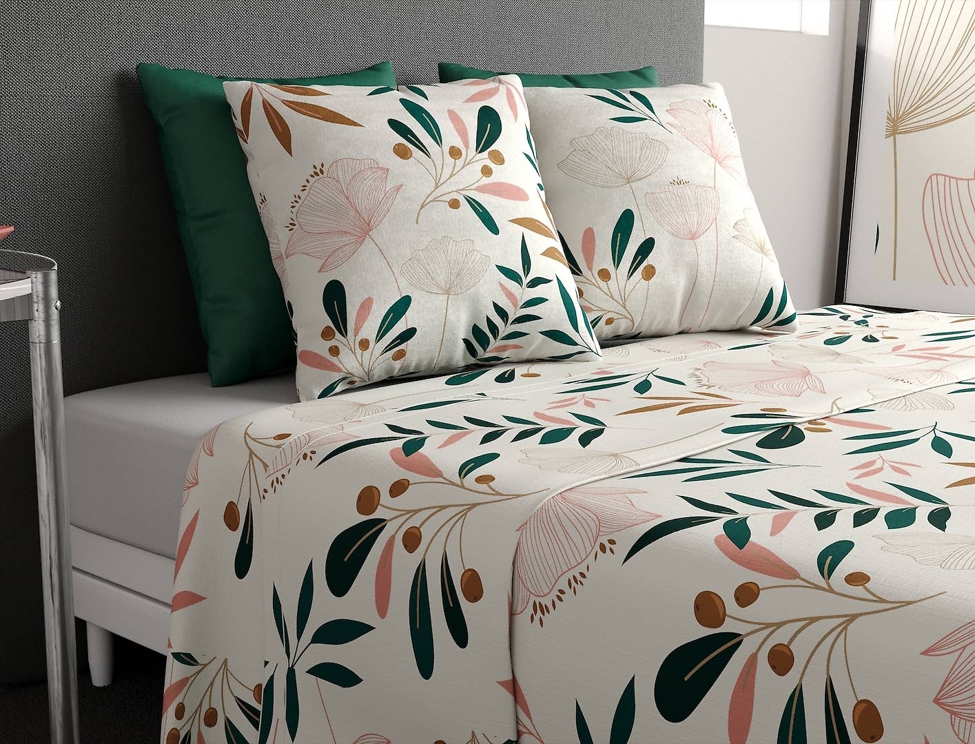 Jogo de Cama 3 Peças 180x290 cm com Lençol Ajustável 90x190 cm em Algodão Bora
