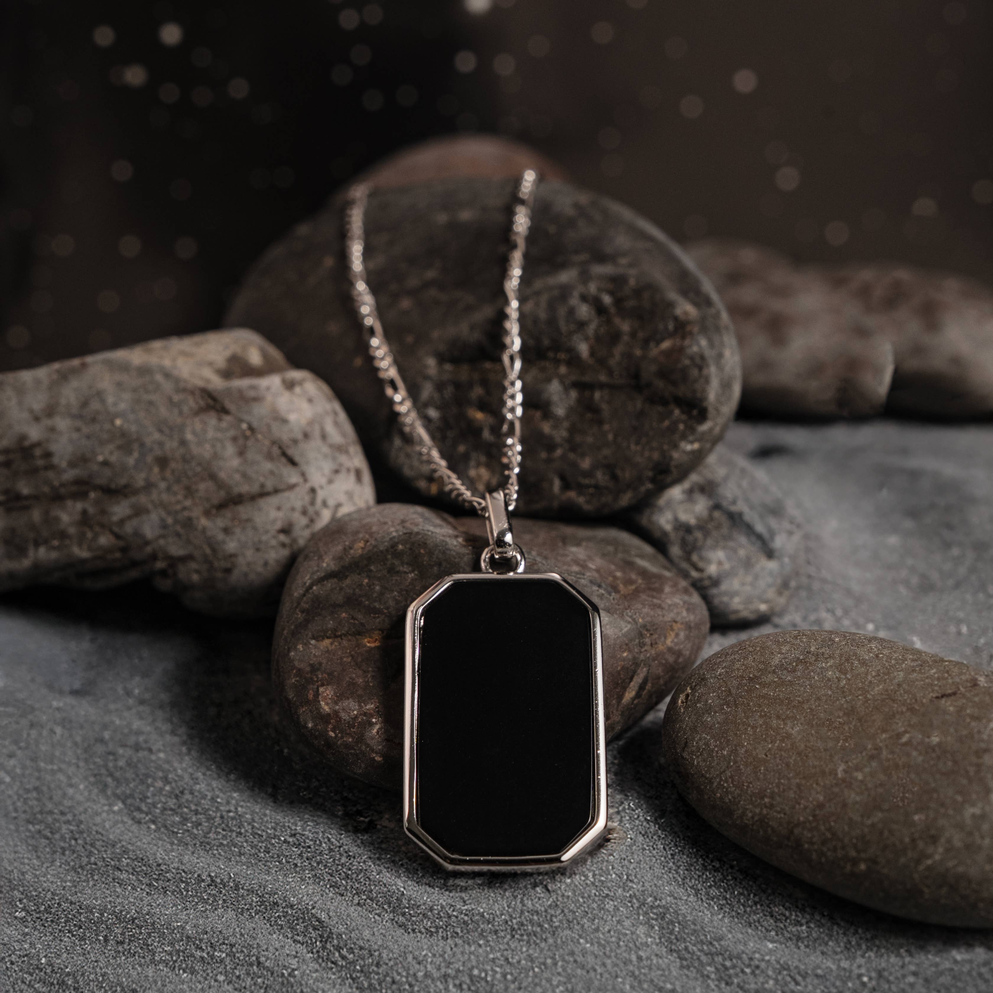 Colar com etiqueta de cão em ónix preto e madrepérola