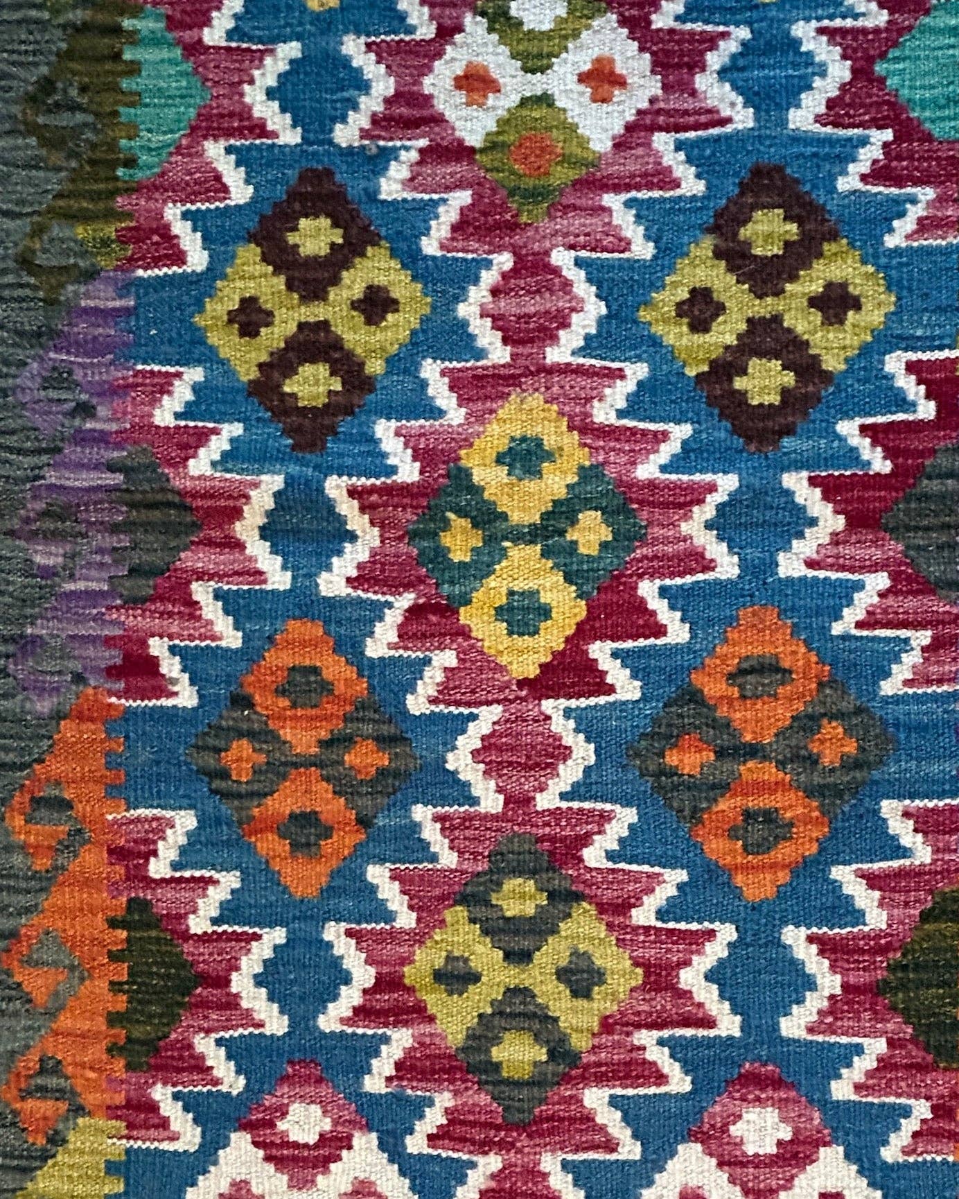 Os kilims corredores são perfeitos para corredores, entradas ou cozinhas, e também são excelentes tapetes de cabeceira. Cada um é tecido à mão por mulheres turcomanas no Afeganistão, refletindo gerações de habilidade artesanal. Tamanho exato: 32" x 51". Limpe usando um aspirador, uma vassoura e lave à mão com sabão neutro. Recomendamos o uso de uma almofada com o tapete para evitar escorregões. A lã vem dos pastores locais. Eles compram a lã e os homens e mulheres turcomanos selecionam-na para que a lã seja fiada em fio. É fiada à mão por mulheres na cooperativa e depois tingida por homens na comunidade local. A tintura é feita usando 80-100% de corantes naturais e as cores naturais da lã diretamente das ovelhas. Se usarem corantes comerciais, são os corantes europeus seguros e resistentes à lavagem. Eles compram a urdidura de lã, pois é fiada à máquina para obter a fibra forte.