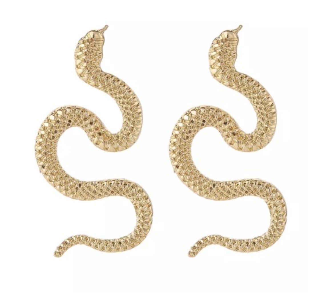 Brincos dourados da marca Emilie Collection com design de dragões. Os brincos são embalados em uma bolsa de veludo para presente da Emilie Collection.