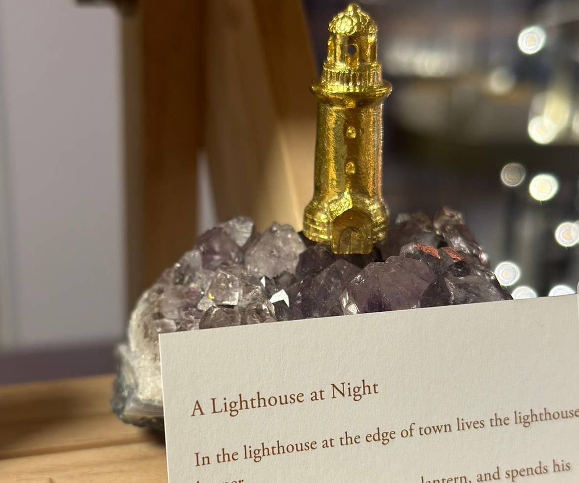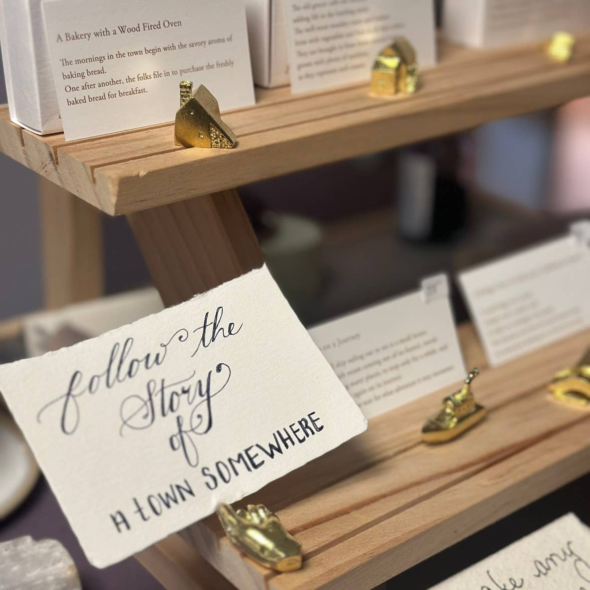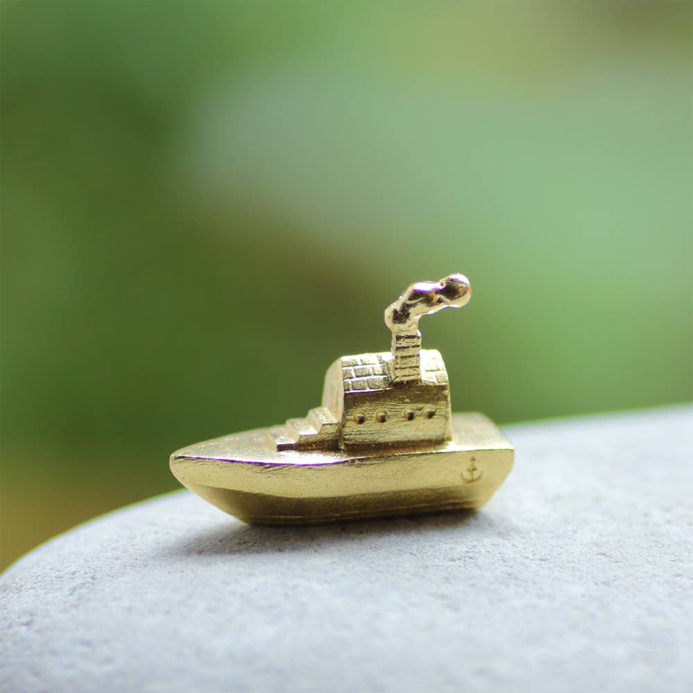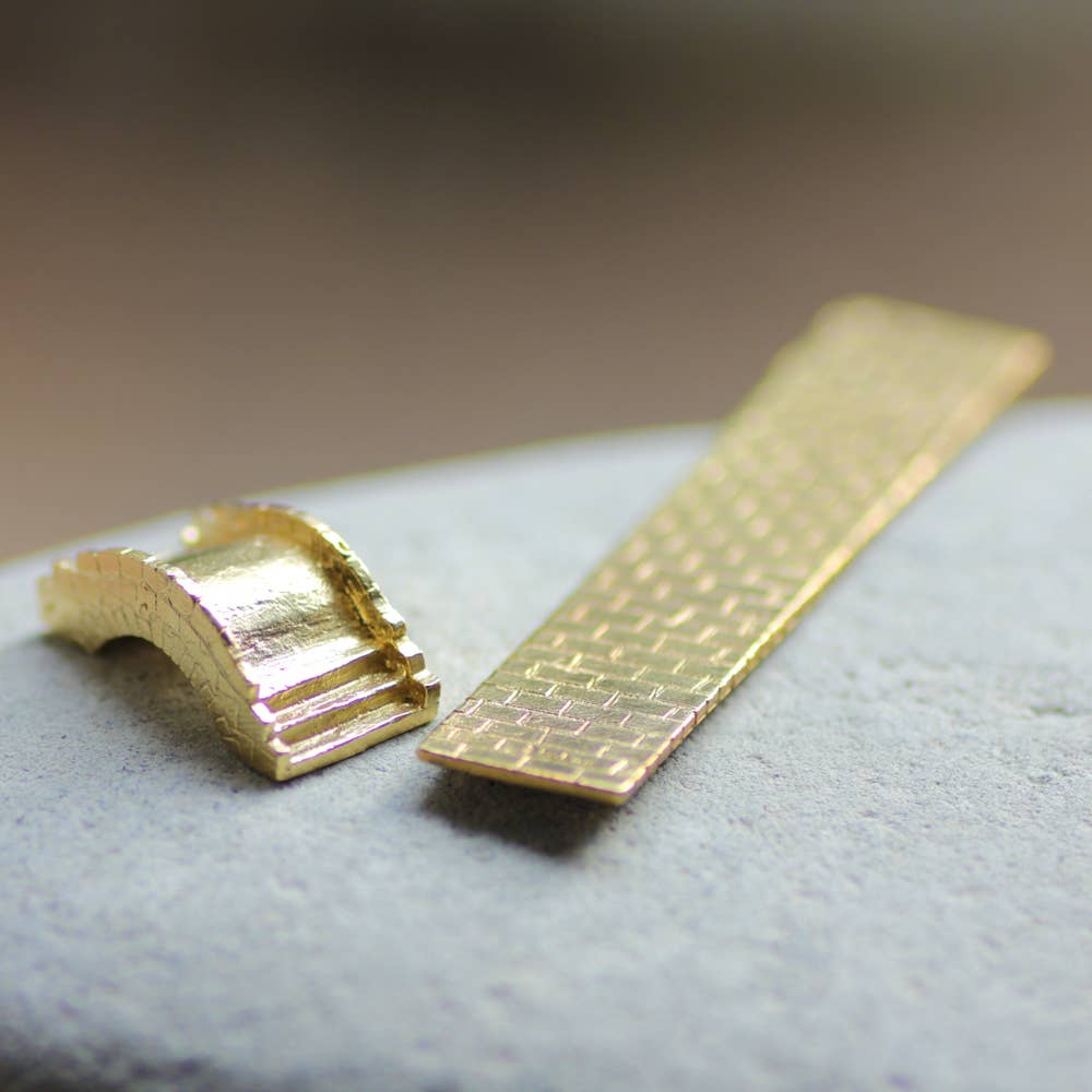 A uma curta distância de barco, há uma pequena ilha. Nela, encontra-se uma casinha para passar o verão. Sua fundação é construída com pedras da ilha. Uma casa térrea para se adaptar aos ventos fortes. Sem eletricidade, sem água, não está ao alcance fácil. O tempo passa diferente da cidade. Imaginei um lugar onde você pode se sincronizar com o ritmo da natureza. Material: latão Tamanho: L1,0 cm A1,8 cm P1,3 cm