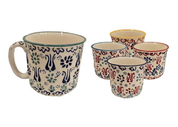 Taça Cerâmica Design Aghan em tons de azul marinho - 5 cm (aprox 3,5 “) de diâmetro. Fabricado à mão na Turquia, pintado à mão, livre de chumbo e seguro alimentar. As peças podem variar devido à natureza feita à mão de cada produto. Cores sortidas - 6 pc min.