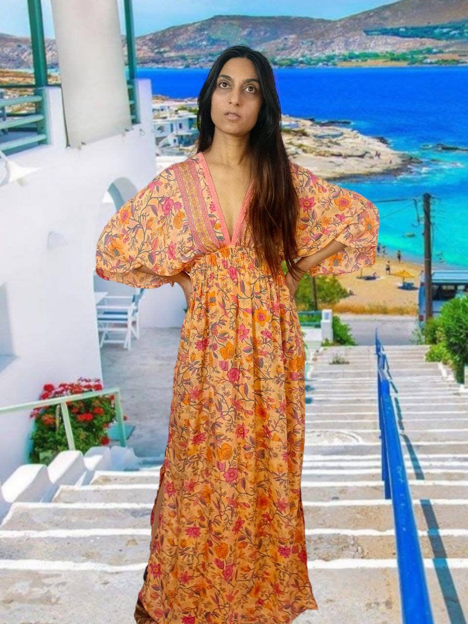 Nola, Exclusive Tie Dye Viscose Dress/Túnica made in India, nova coleção primavera/verão Busto 64cm, 74cm oco ao chão, 22cm braços 100% viscose Ref. 10 Nola coleção de viscose tie-dye exclusiva Nola, Vestido/Túnica saída de praia nova coleção primavera/verão Obs: 64cm cava a cava, 74cm comprimento, 22cm mangas 100% viscose Ref. 10