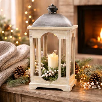 Lanternas Brancas Distressed 13x8.75x6.75in
