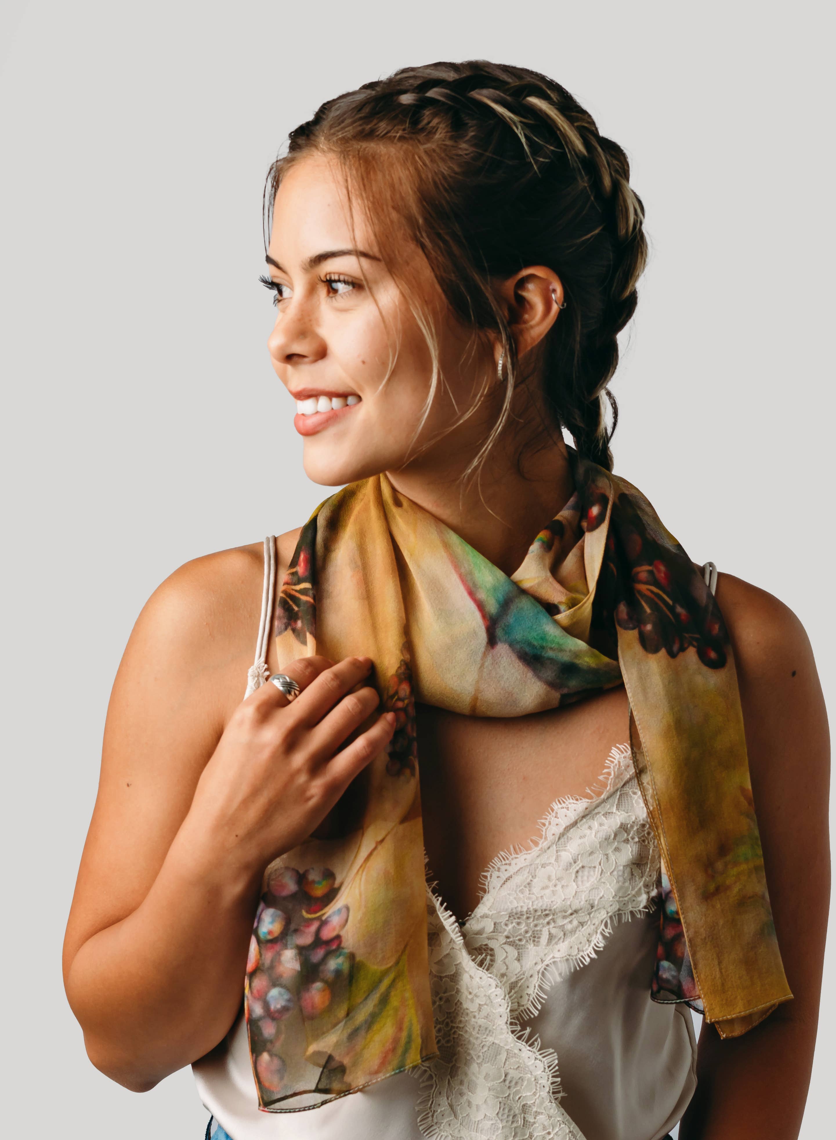 Lenço de seda Winery Art - Lenço transparente Spring Vineyard para ela