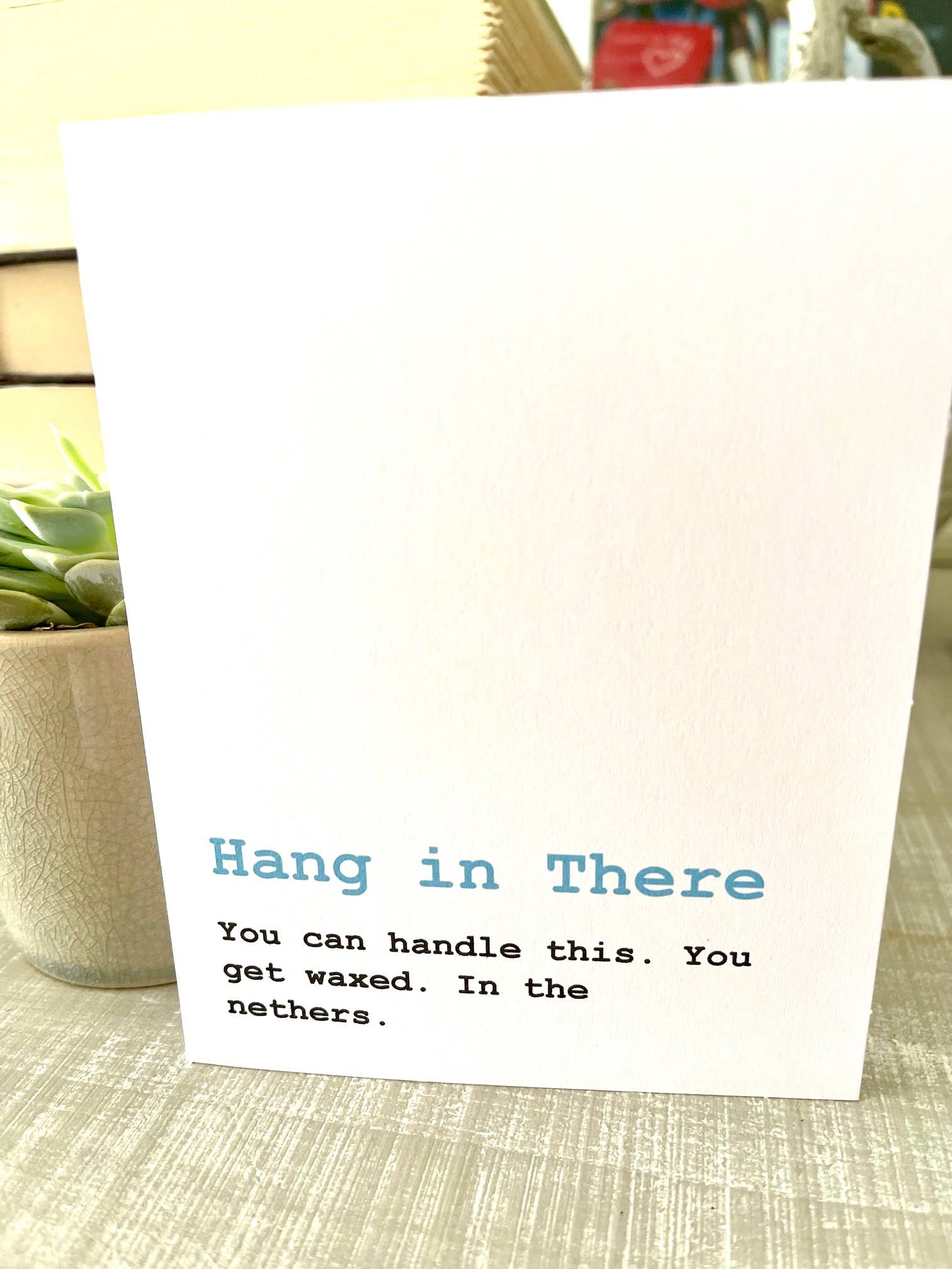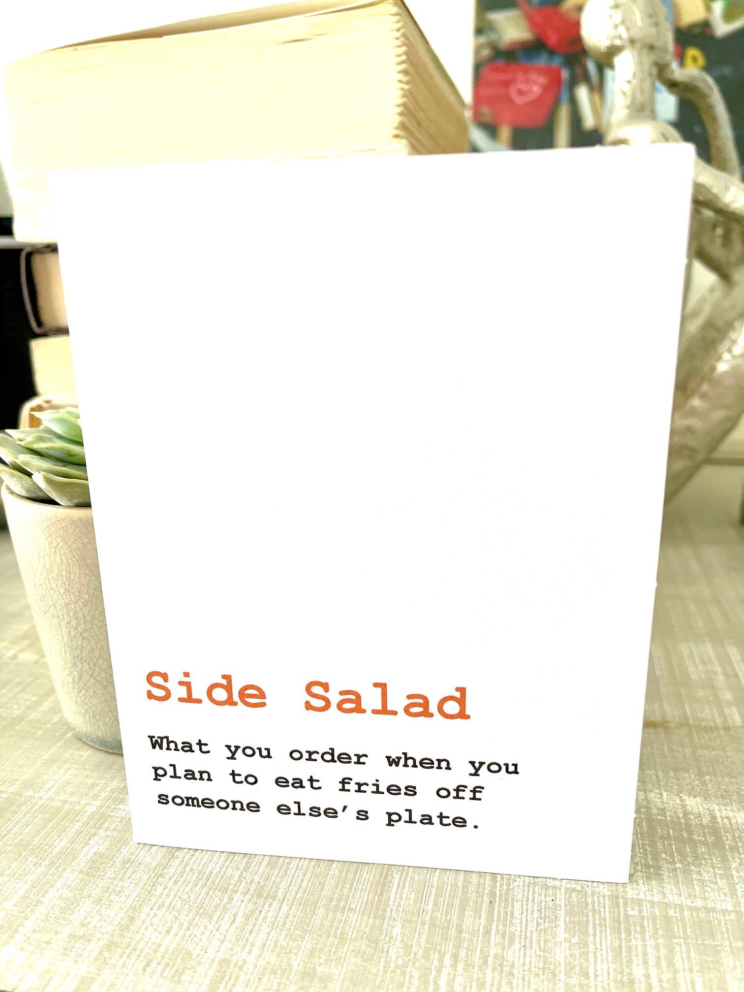 O cartão perfeito de 4" x 5.5" para quem sabe o que é preciso amar alguém... que tem um gato. A mensagem interna diz: “Ele é um guardião”. Confira as outras variedades ou bem como a série Bad Boss e mantenha os seus clientes a rir. O cartão e o envelope vêm embalados numa capa transparente e protetora.
