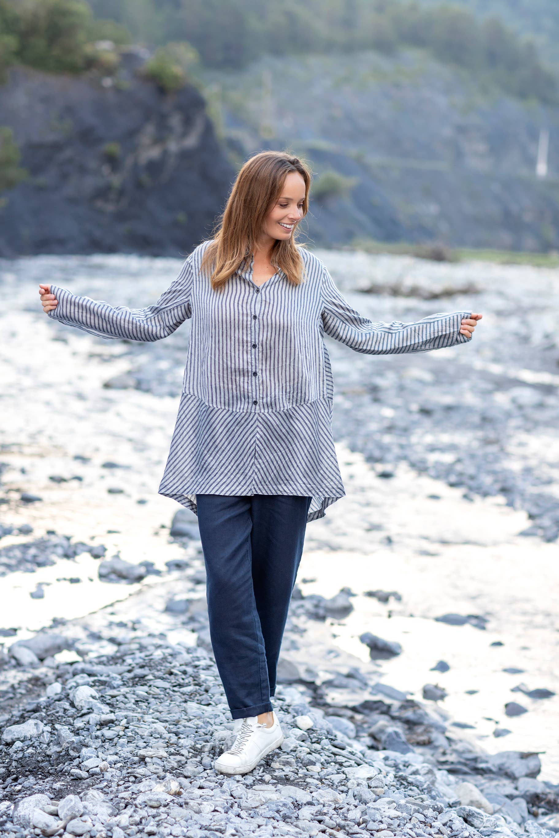 Ainda não existem opiniões para Camisa às Riscas com Mangas Curtas e Gola com Folhos para Senhora SKT51087.