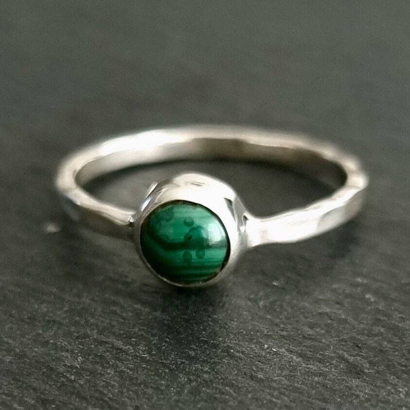 Anel Unissexo de Citrino Redondo de 6mm | Prata Esterlina Martelada