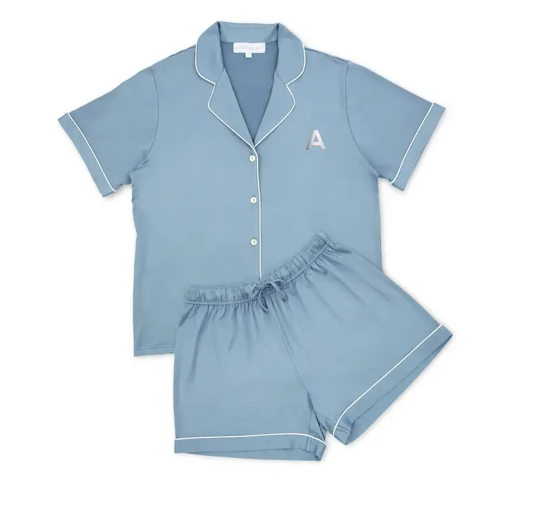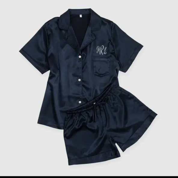 Presenteie-se, à noiva ou às suas damas de honra com nosso conjunto personalizado de pijama feminino em cetim azul marinho sólido, perfeito para usar enquanto se preparam na manhã do casamento. Seu grupo de noivas estará combinando com roupas personalizadas, estilosas e confortáveis, neste lindo conjunto de pijama. Acrescente um nome bordado ou iniciais para tornar cada camisa de cetim ainda mais especial para as mulheres da sua festa de casamento. Feito em cetim luxuoso e leve, com modelagem soltinha, esses pijamas curtos exclusivos são presentes acessíveis para o grupo de casamento, sem perder a elegância! Nosso conjunto personalizado de pijama de cetim é uma opção charmosa para o dia do casamento ou um excelente presente para chá de panela, que a madrinha, as damas de honra e até a mãe da noiva vão adorar.