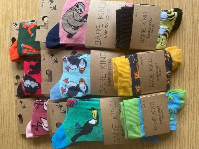 Essas meias ajudam a salvar os papagaios-do-mar, com 10% dos lucros doados ao Scottish Seabird Centre. Nossas meias são: * Termorreguladoras (mantêm frescas no verão e aquecidas no inverno) * Antissuor (absorvem a umidade e têm ação antibacteriana) * Mais macias que algodão * Lavagem a frio para preservar o meio ambiente (30 graus) * Certificadas pelo OEKO-Tex * Auditadas pela SEDEX * Embalagem 100% reciclável A Bare Kind foi fundada por Lucy em 2018 para salvar animais em risco em todo o mundo por meio de parcerias com instituições de caridade. Essas meias fazem parte da nossa Ocean Collection, inspirada no profundo oceano azul. São unissex e muito apreciadas por todos. A coleção inclui meias Árticas, Tropicais, Antárticas, Aqua e Azuis. Perfeitas para quem busca meias escocesas, fofas, em tons pastel, para presente, com tema de pássaros, meias de animais fofos, marcas dos EUA, complementos para presentes, e presentes de puffin. Também conhecidas como Meias Azul Claro ou Meias Aqua. Consideradas ainda como meias divertidas para homens, presentes para o Dia dos Pais e Páscoa.