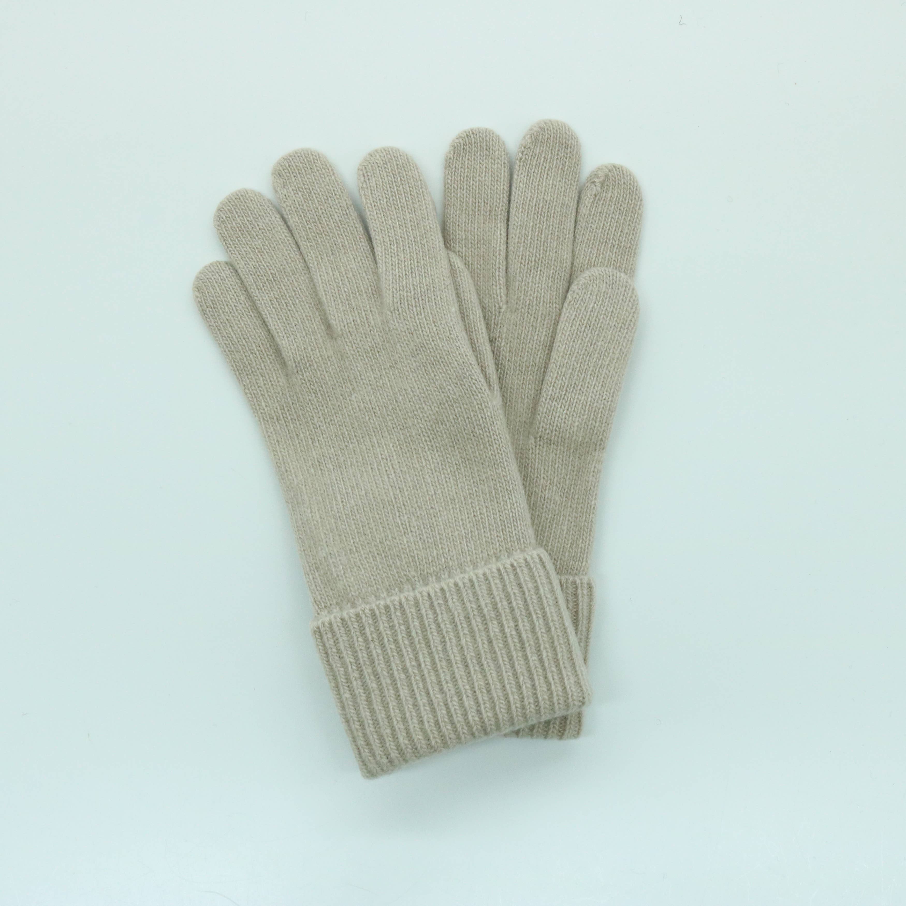LUVAS DE CAXEMIRA EM JERSEY LISO COM PUNHO CANELADO MINI DOBRADO