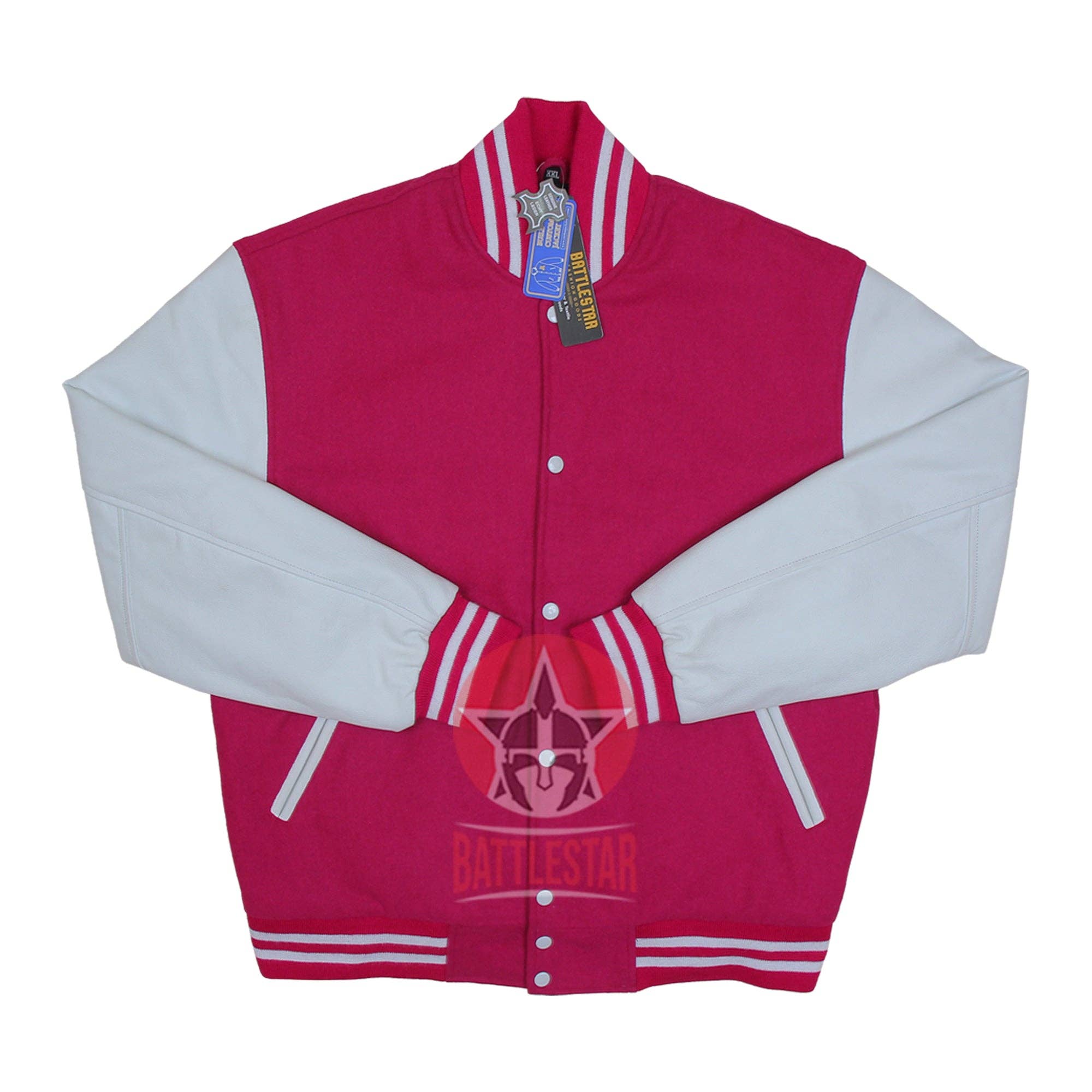 DETALHES DO CASACO O Casaco Clássico Varsity Cetim * Cor: Rosa * Costela Rosa/Branco no Pescoço, Pulso e Bottom/Bainha * Dois bolsos laterais externos * Material: Tecido acetinado de alta qualidade * Interior: Poliéster Acolchoado Forro & Dois Bolsos Internos * Estilo: Varsidade Clássica * Cuidado: SÓ SECO LIMPAR Podemos adicionar bordados personalizados, estampagem ou etiquetas nestes casacos de acordo com a procura do cliente. São aplicáveis custos adicionais