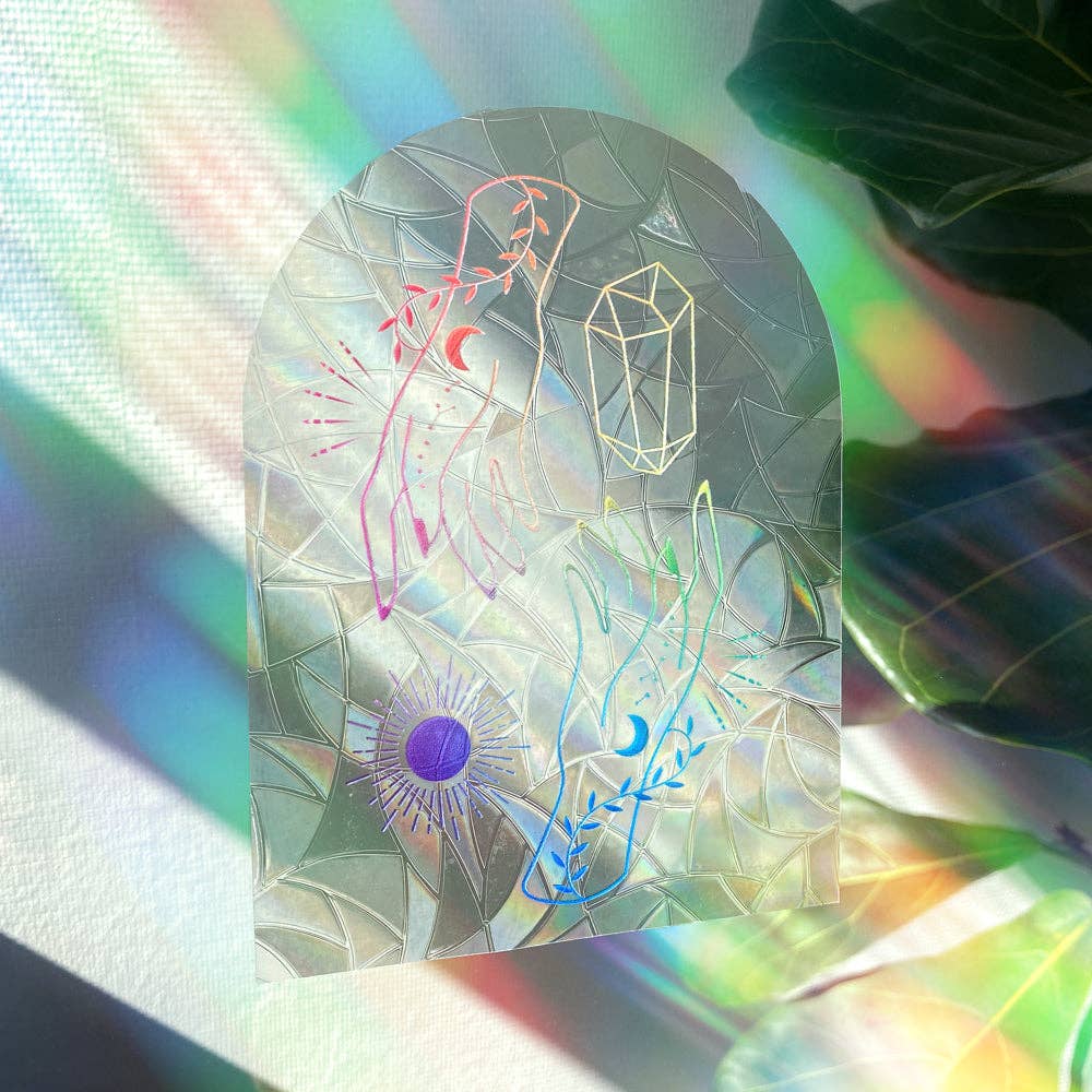 Um belo lembrete para começar o dia com uma mentalidade positiva. Este adesivo desenhado à mão enche sua casa de arco-íris quando aplicado a uma janela com luz solar DIRETA. A intensidade do arco-íris aumenta/diminui dependendo da colocação do decalque.