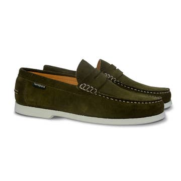 40678/00 - Mocassim Masculino em Camurça Taupe com Tassel e Solado em Couro